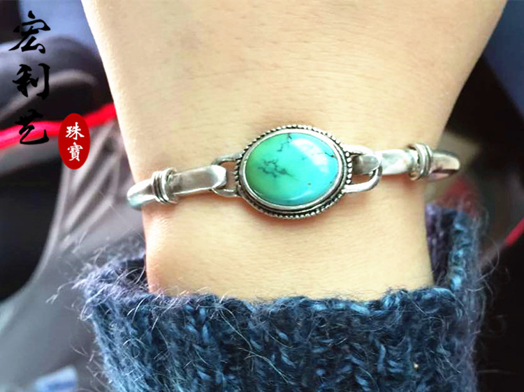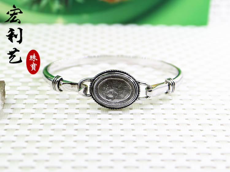 宏利925纯银手镯空托活口伸缩可调手镯托 蜜蜡欧式银托松石手环托