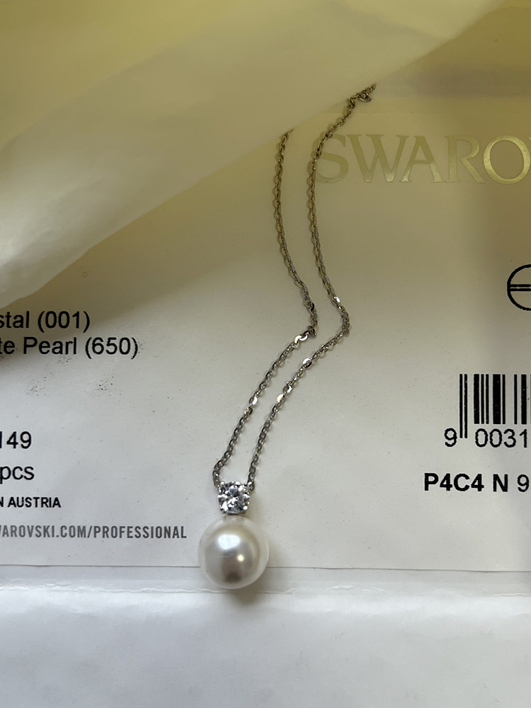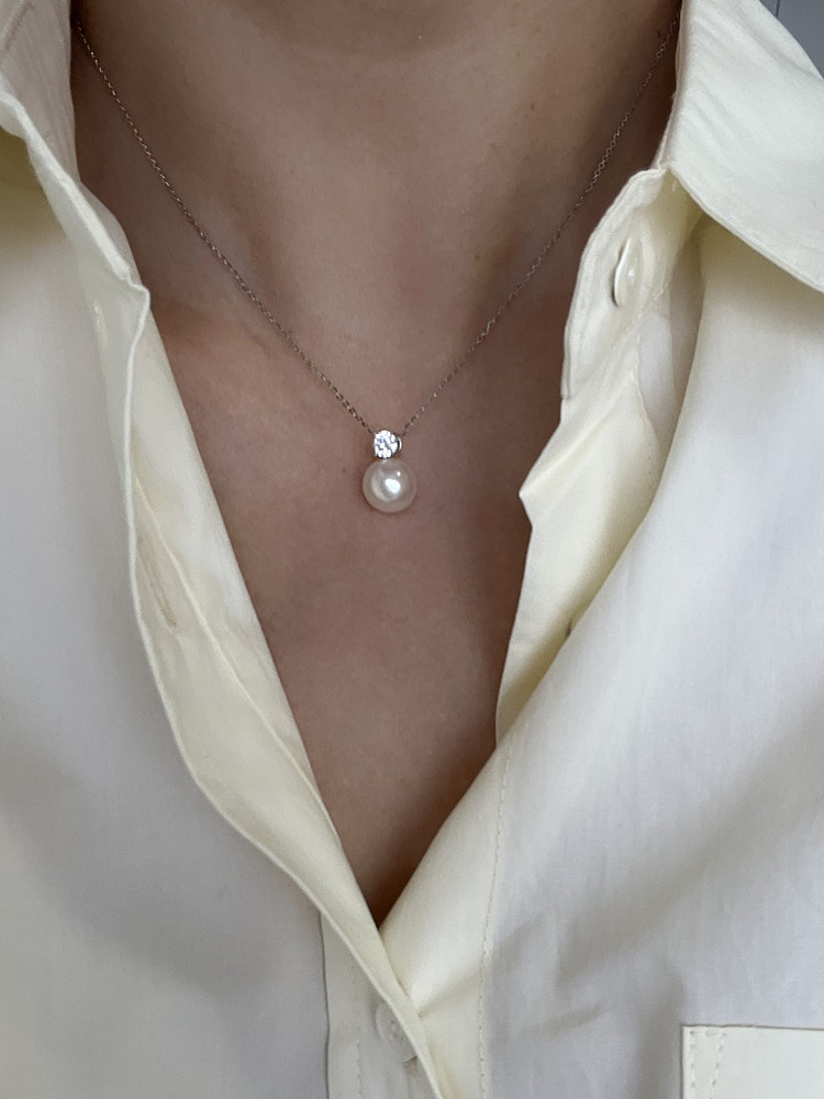 气质单颗珍珠项链镶锆正圆施家澳白色水晶吊坠通体纯银锁骨链通勤
