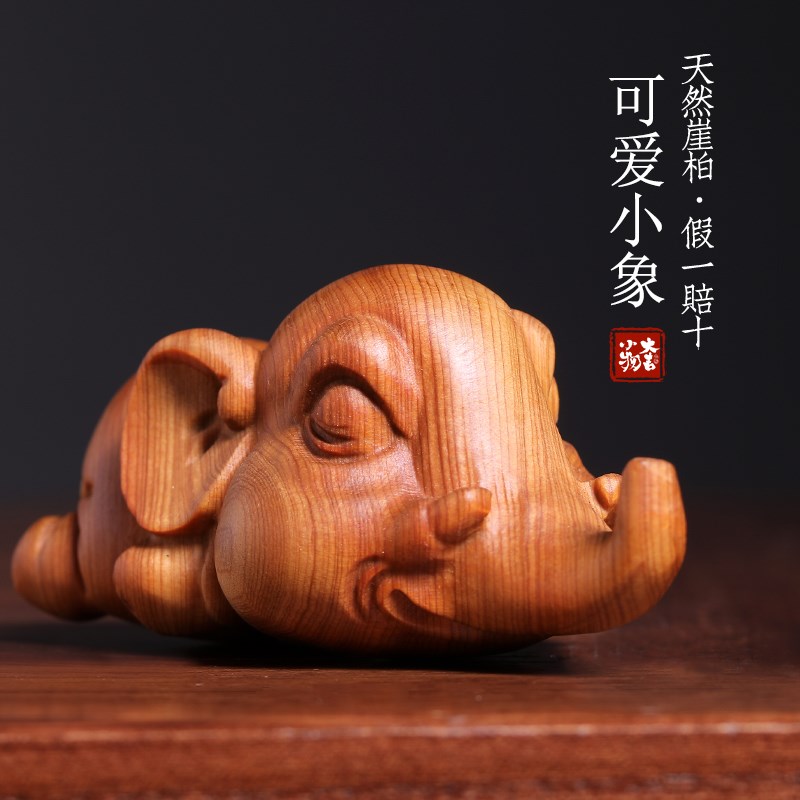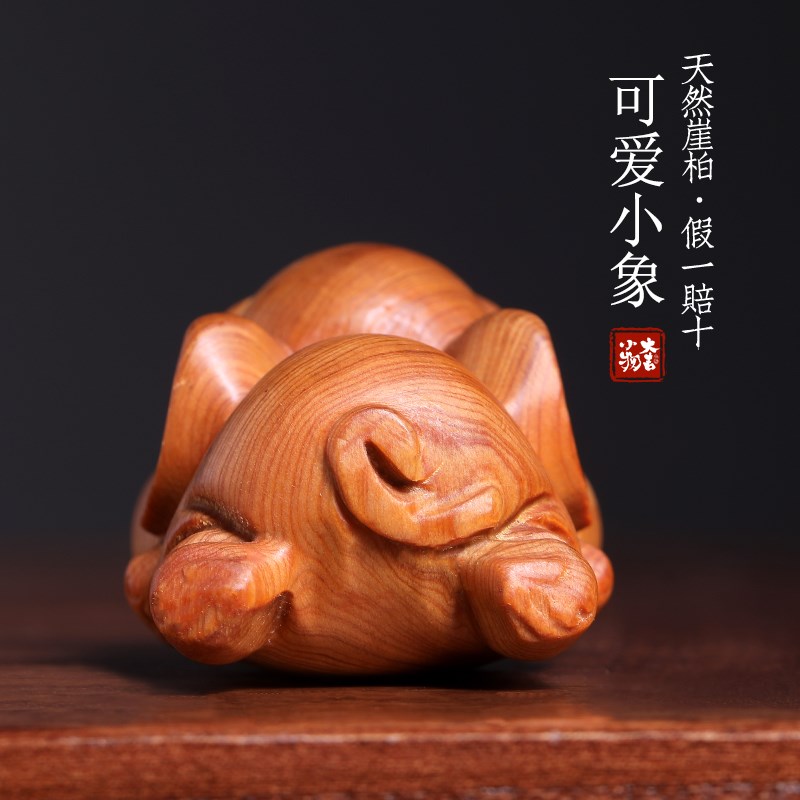 天然崖柏木雕刻可爱小象摆件吉祥如意国潮创意萌宠大象文玩手把件