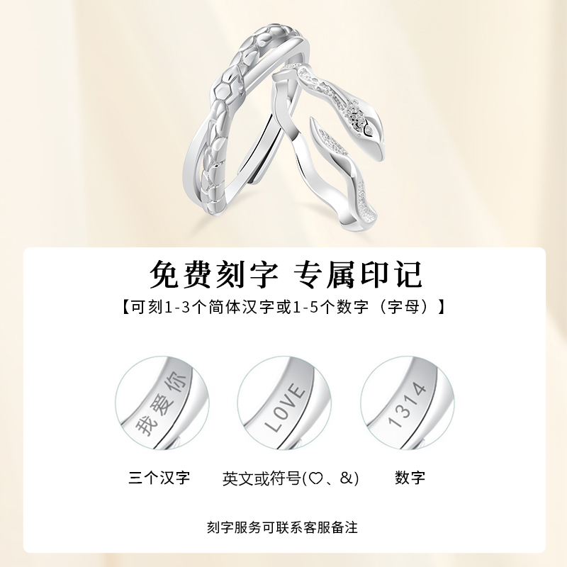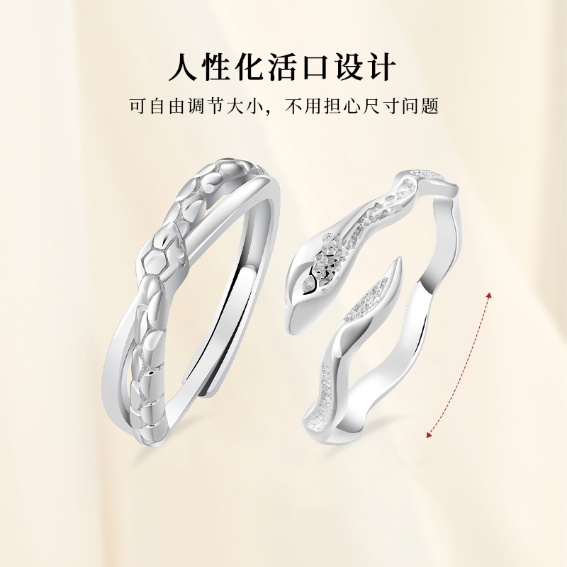 VIVIWELL蛇年离火 新年转运蛇形情侣对戒小众设计本命年纯银戒指