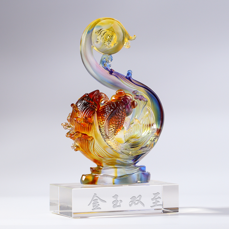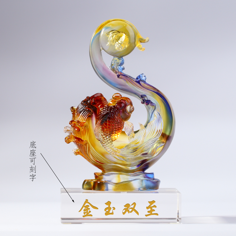 琉璃金鱼金玉满堂结婚礼物乔迁新居酒柜装饰品摆件中式金玉双至