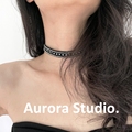 方块铆钉皮革choker项圈黑色皮质颈链锁骨链小众百搭卫衣项链高级