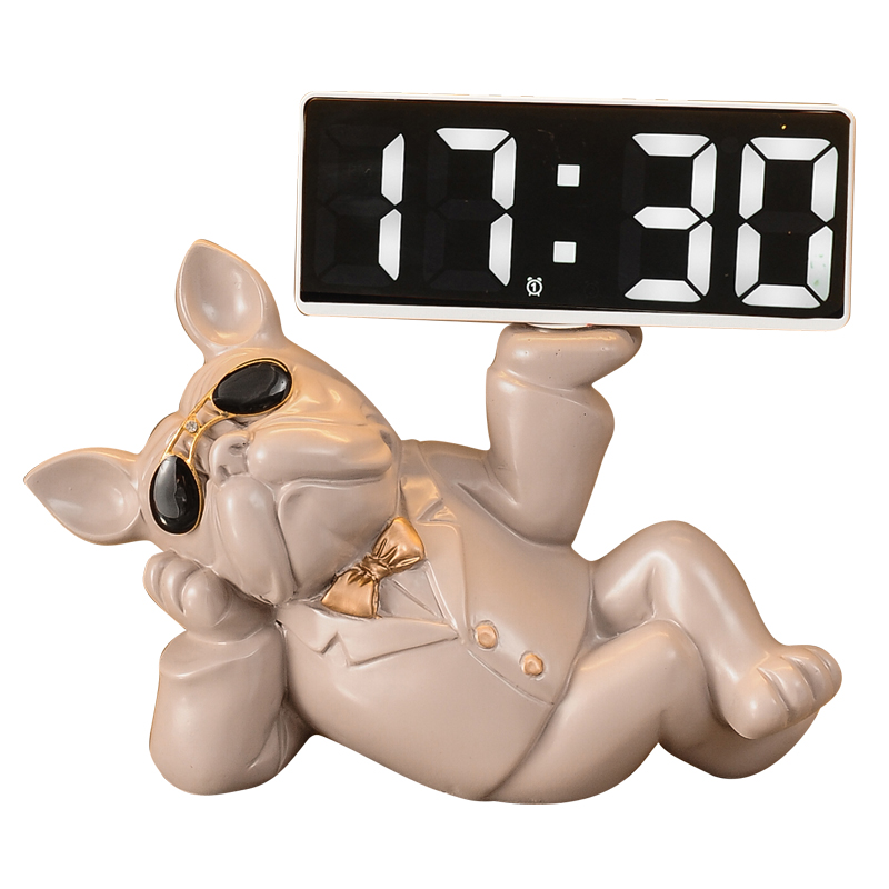 创意斗牛犬酒柜i桌面电子台式钟表小闹钟时钟家用钥匙收纳托盘摆