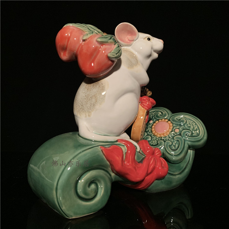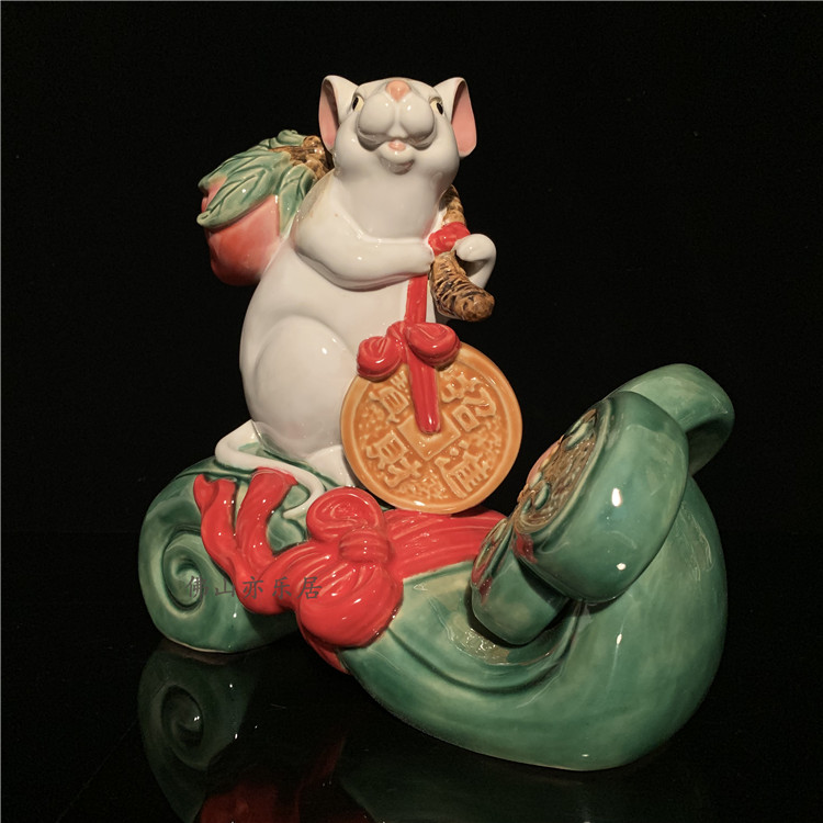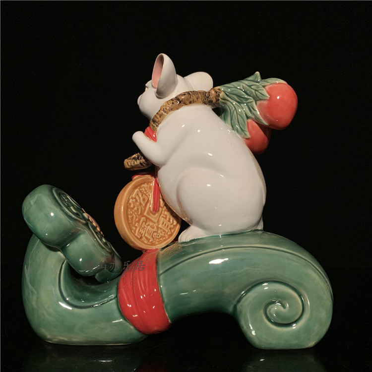 石湾公仔陶瓷十二生肖鼠年老鼠摆件新居乔迁家居装饰拜年商务礼品