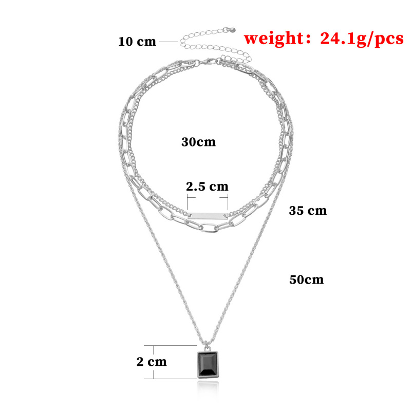 欧美饰品 黑色镶钻宝石吊坠锁链项链女 时尚街拍多层潮流项饰
