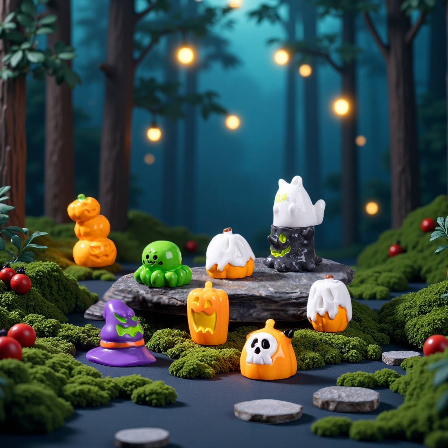 可爱万圣节南瓜幽灵萌粒 diy装饰品配件迷你微景观树脂小摆件摆设