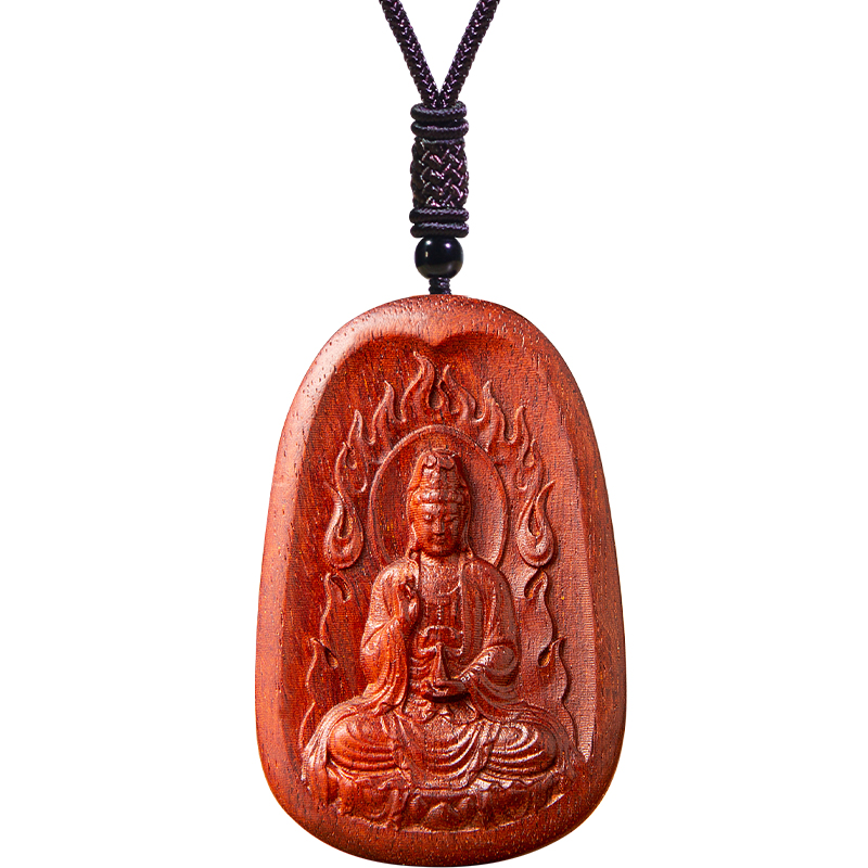 火焰观音吊坠木质木雕小叶紫檀桃木檀木男士带立体观世音菩萨大士