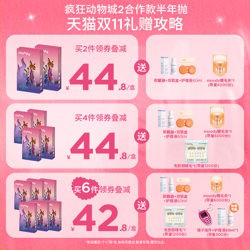 加购!15号付定】moody美瞳疯狂动物城2半年抛彩色隐形眼镜2片