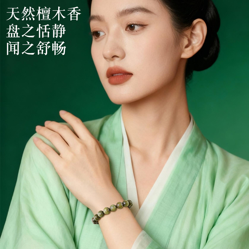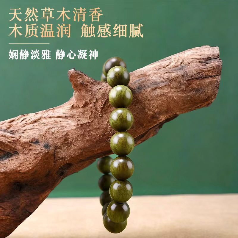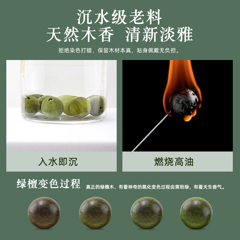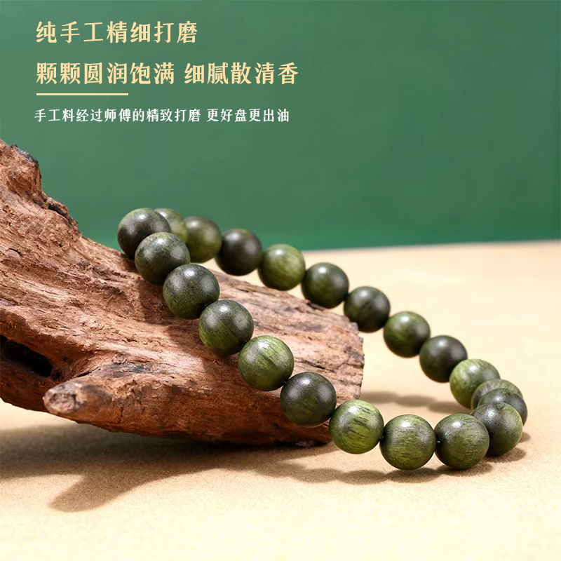 槿泽祥天然绿檀木手串百年木高油高密手饰男女五行补木檀香木手链