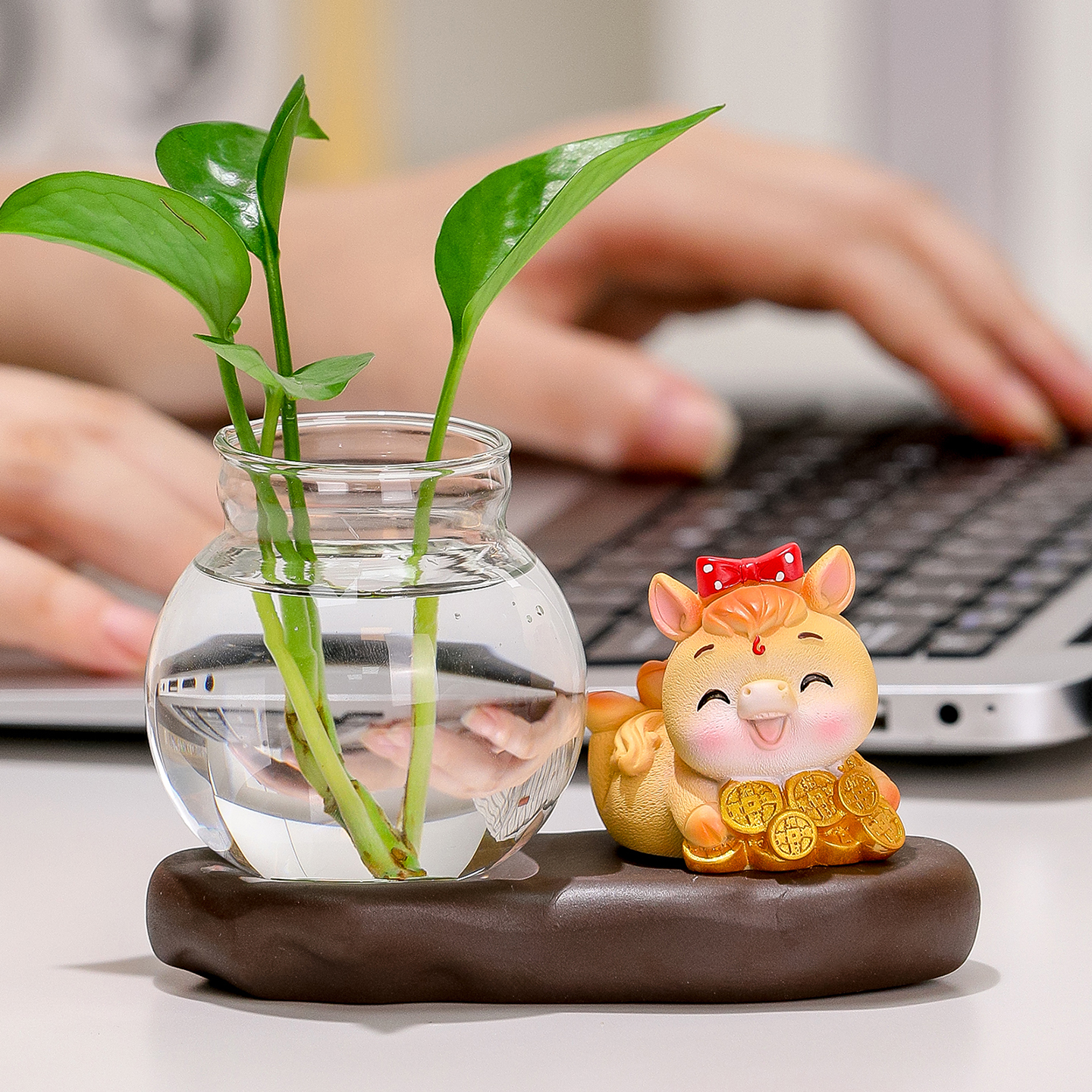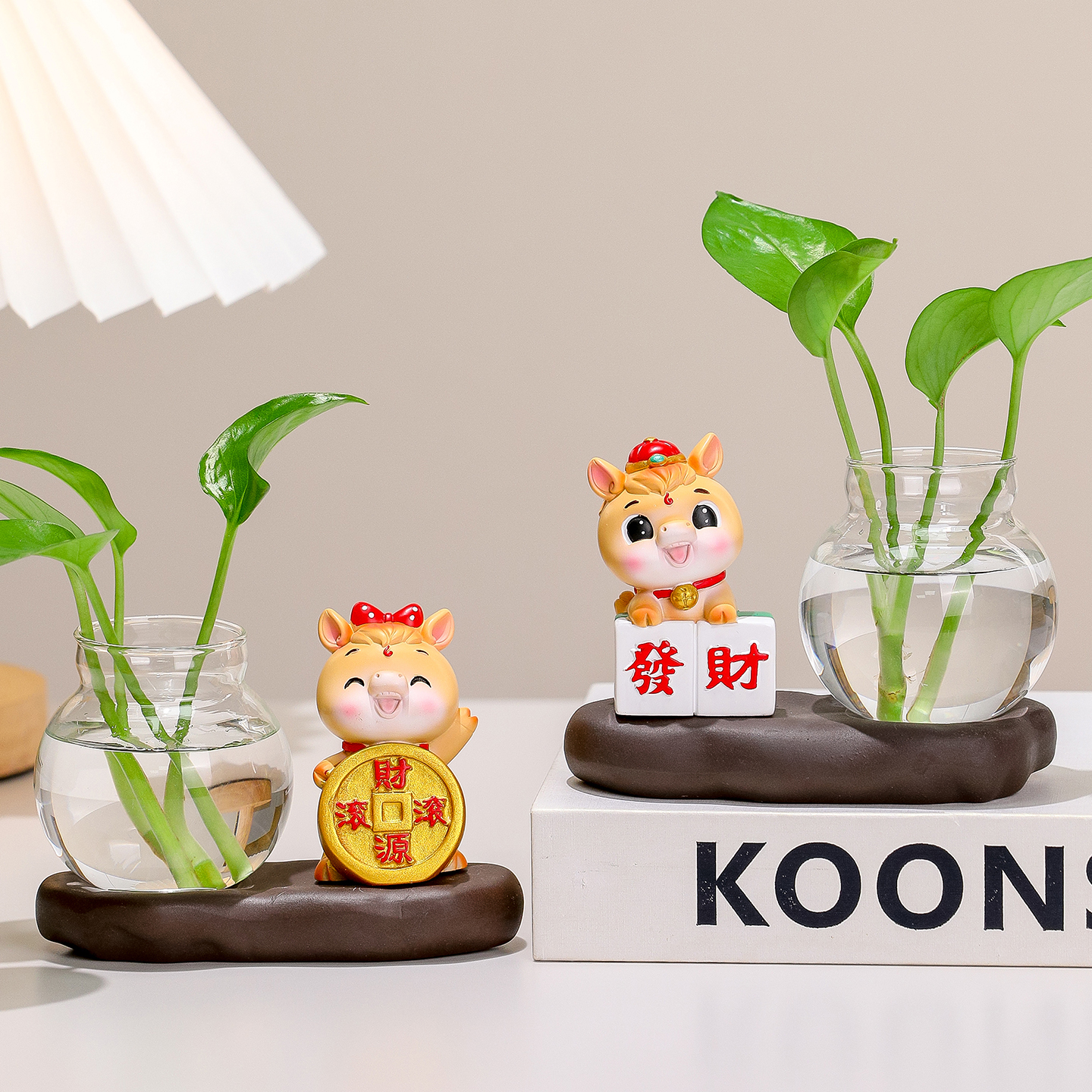 卡通可爱小马摆件创意家居客厅桌面插花装饰品办公室工位小礼物