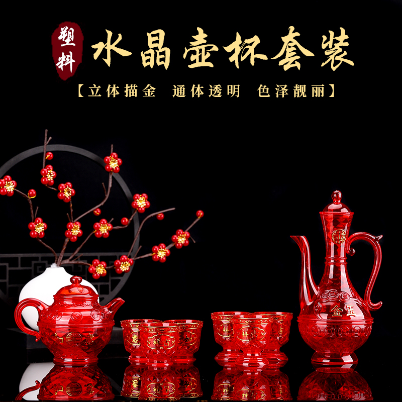 敬神拜拜茶酒杯红色塑料摆供拜老爷财神供佛供佛佛前酒壶茶壶碗筷
