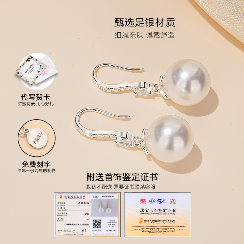 珍珠项链颈链999足银耳环女纯银耳饰妈妈款首饰套装妈妈生日礼物