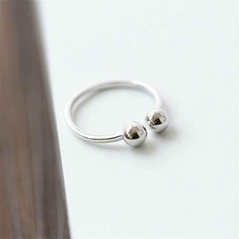 原创简约设计S925纯银气质百搭双圆珠光面戒指女款指环个性开口戒