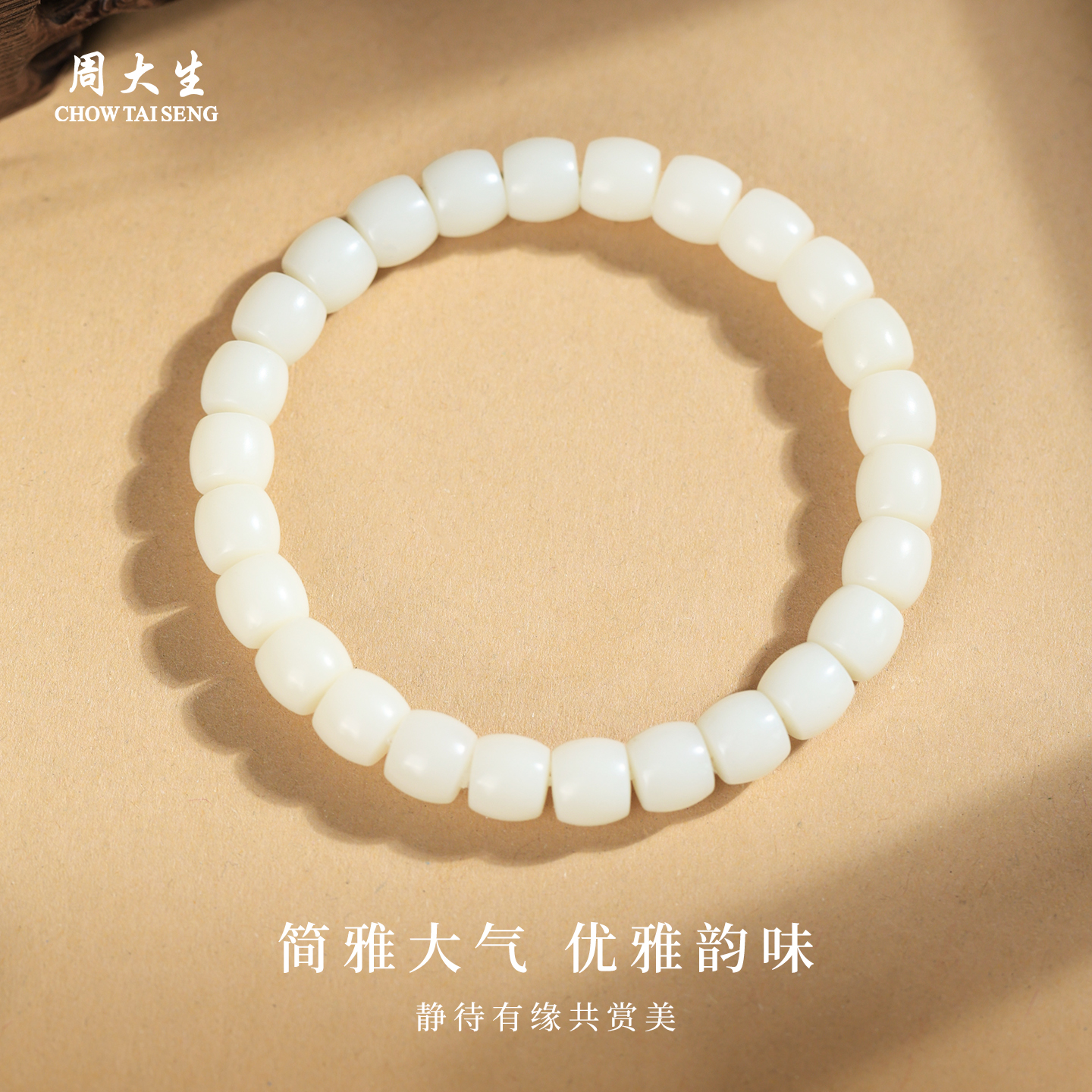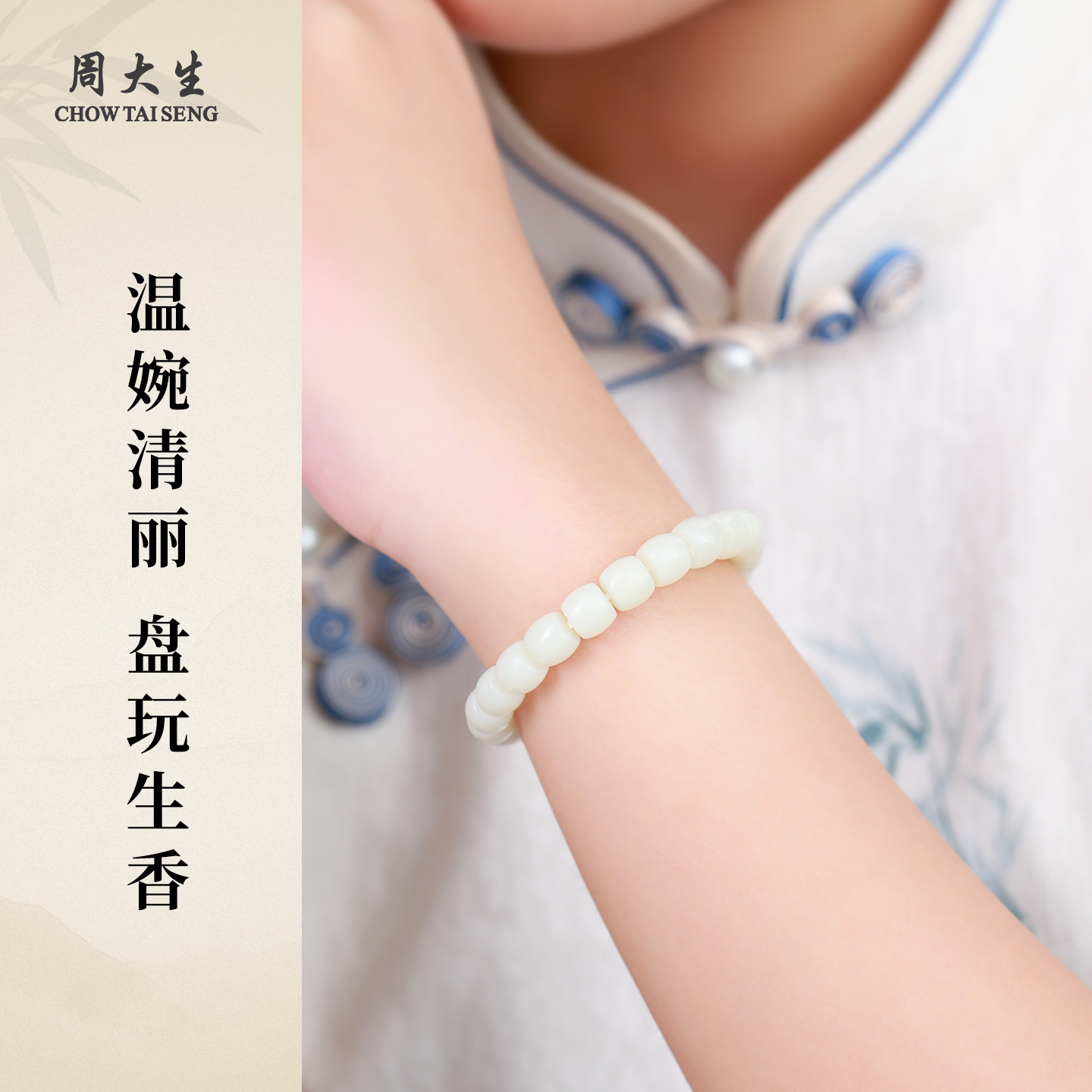 周大生官方和田玉手串女平安遂意正品高端高冰真白玉手链生日礼物