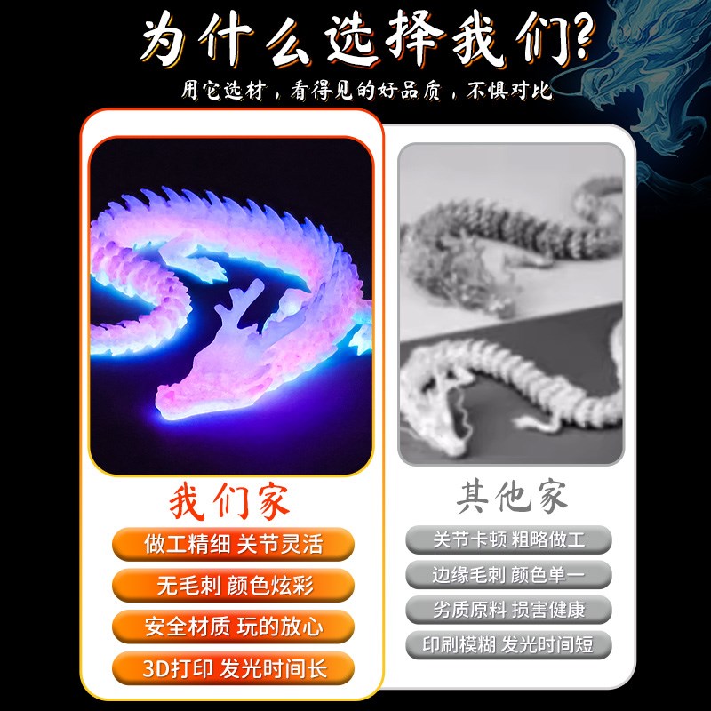 网红3d打印夜光龙玩具桌面摆件全关节可动三地立体模型骨节扭扭龙
