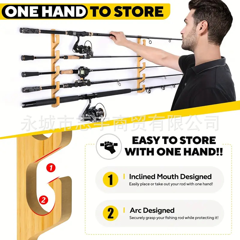 竹制鱼竿架鱼竿收纳架家用木制鱼竿存储架壁挂式鱼竿展示架