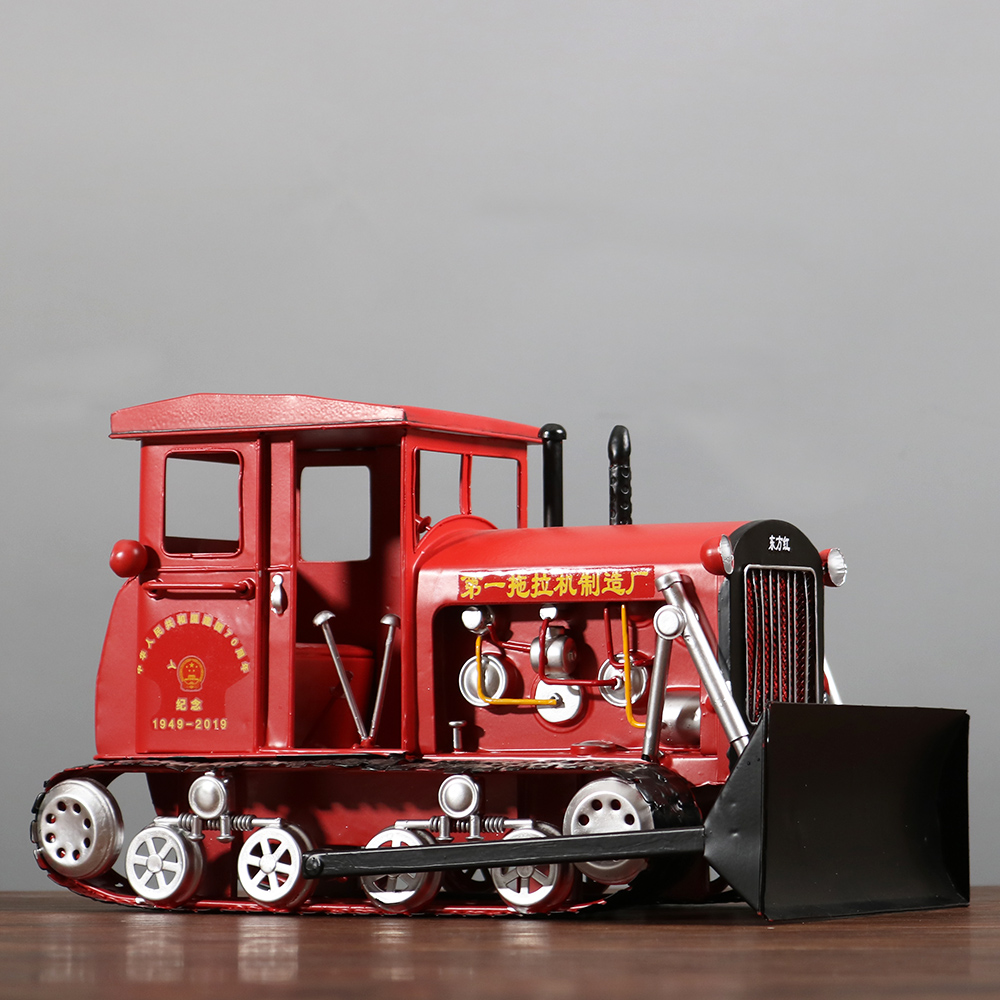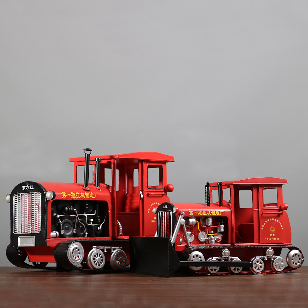 东方红54式拖拉机金属模型摆件铁艺推土机装饰农机店工艺品道具