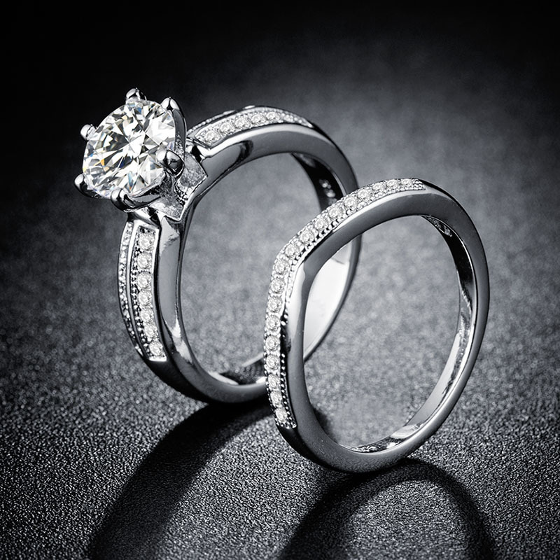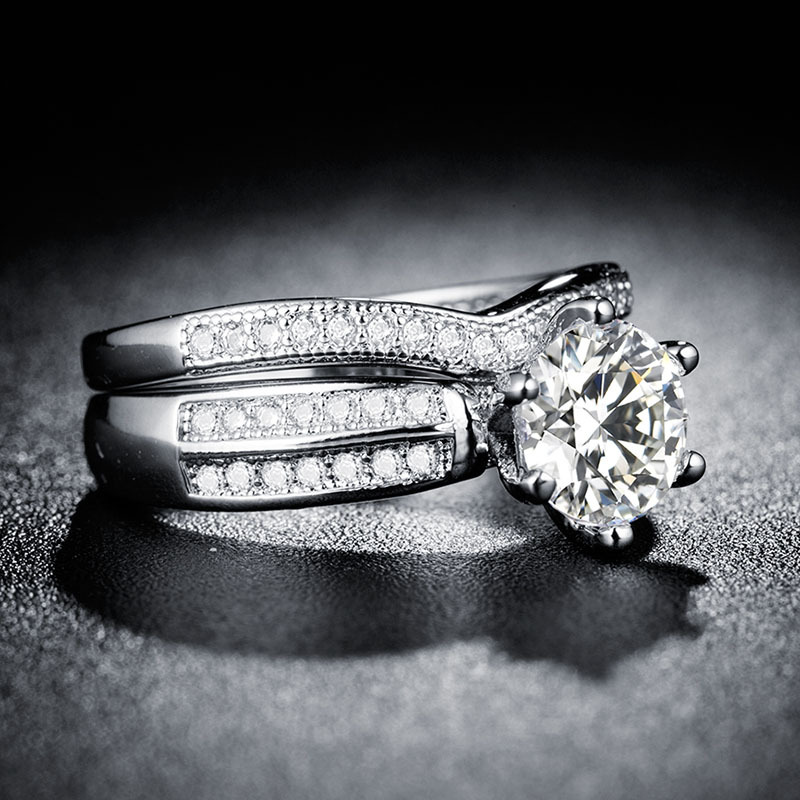 六爪两克拉仿真钻石戒指二合一镀玫瑰金锆石钻戒表白订婚生日礼物