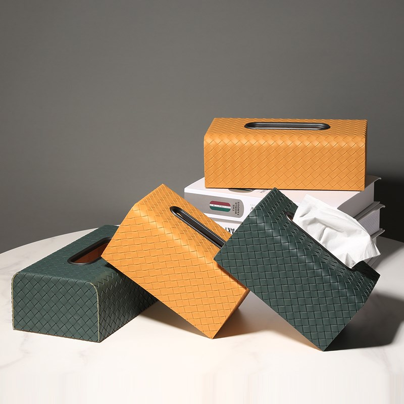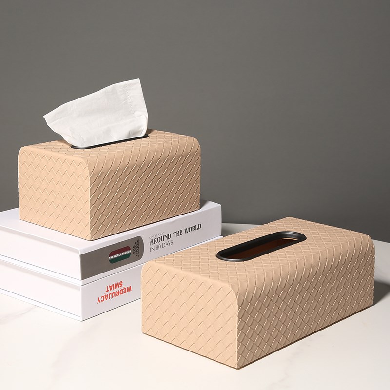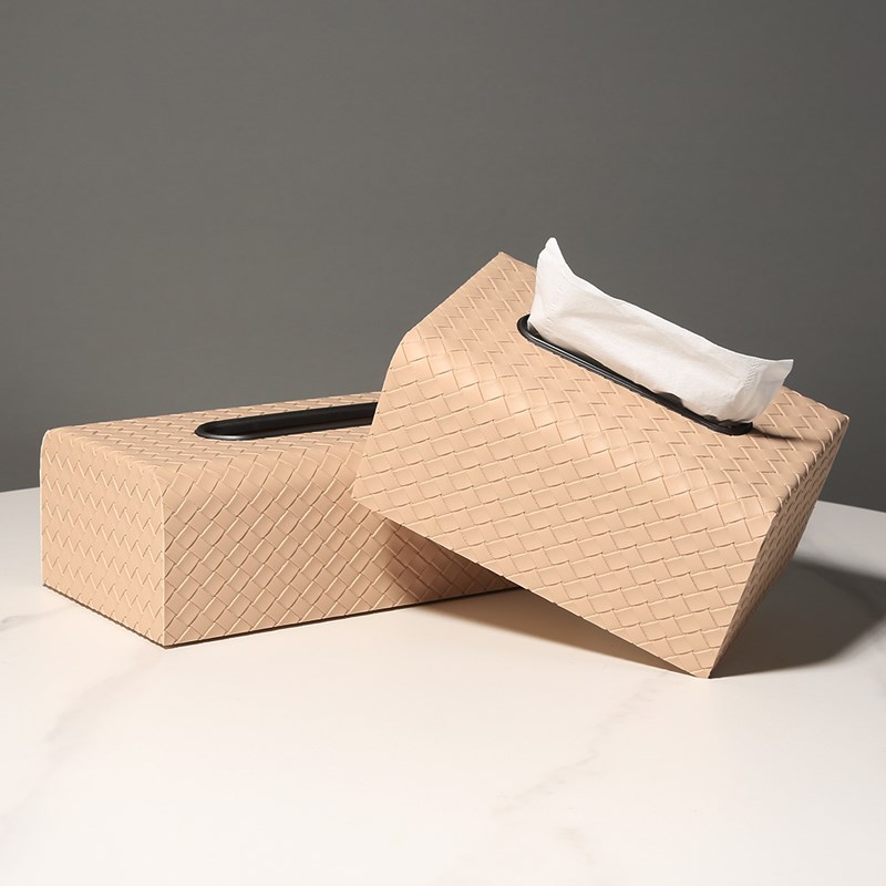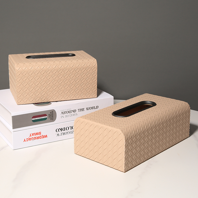 皮质纸巾盒编织纹长方形收纳抽纸盒客厅茶几餐厅样板房装饰品摆件