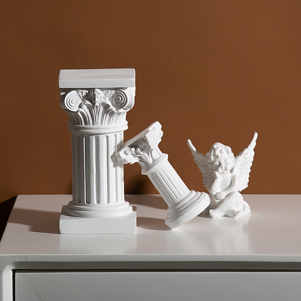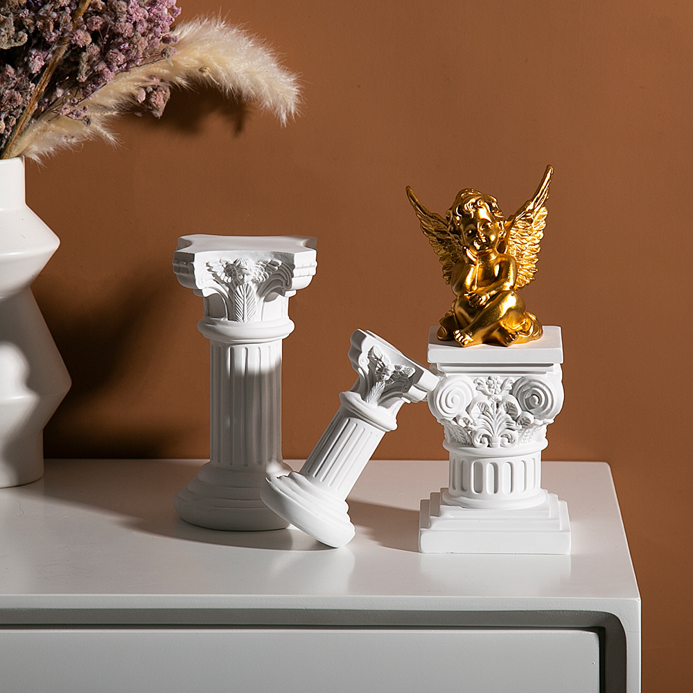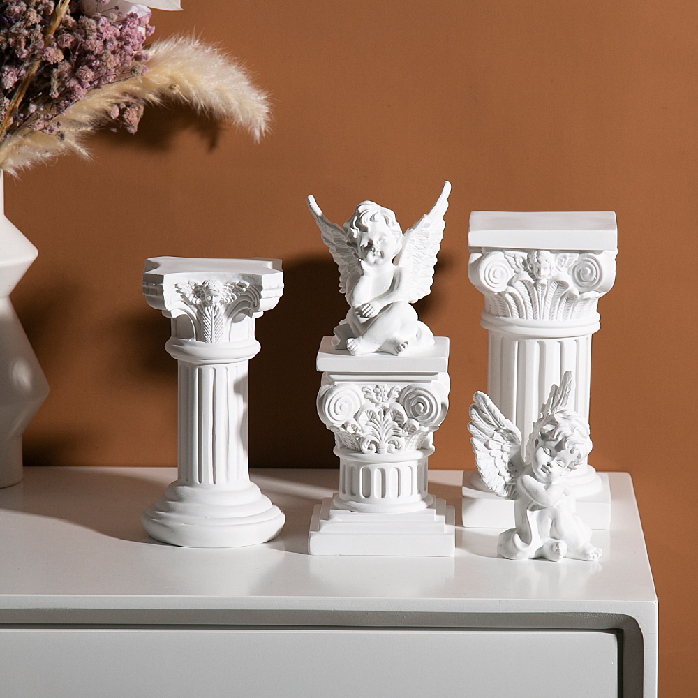北欧树脂罗马柱烛台天使摆件雕塑橱窗样板房迷你拍摄道具软装饰品