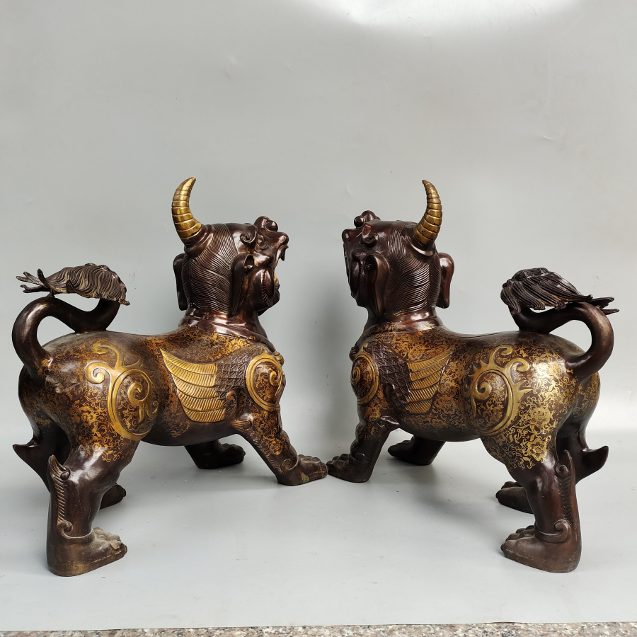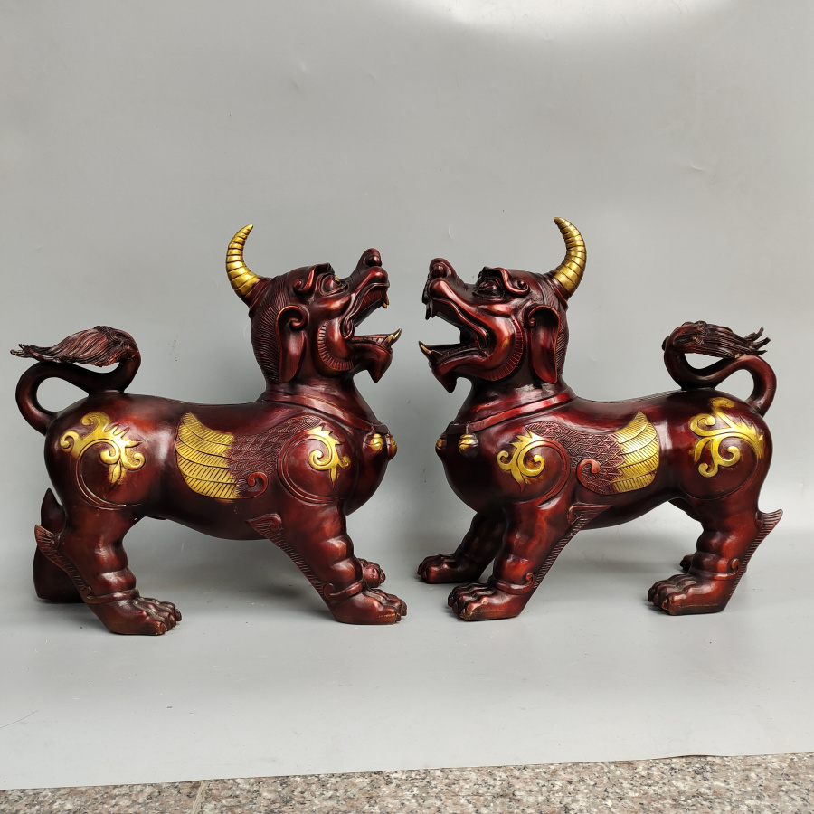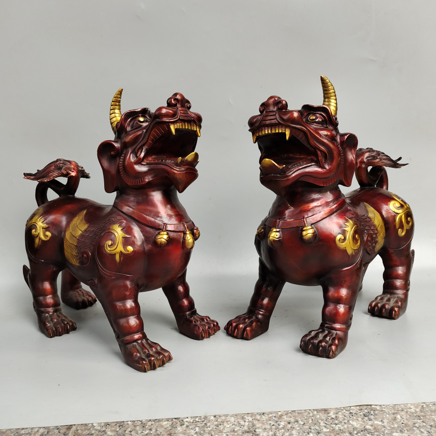 特大号铜独角兽摆件一对纯铜貔貅飞天皮丘镇宅招财家居门厅礼品