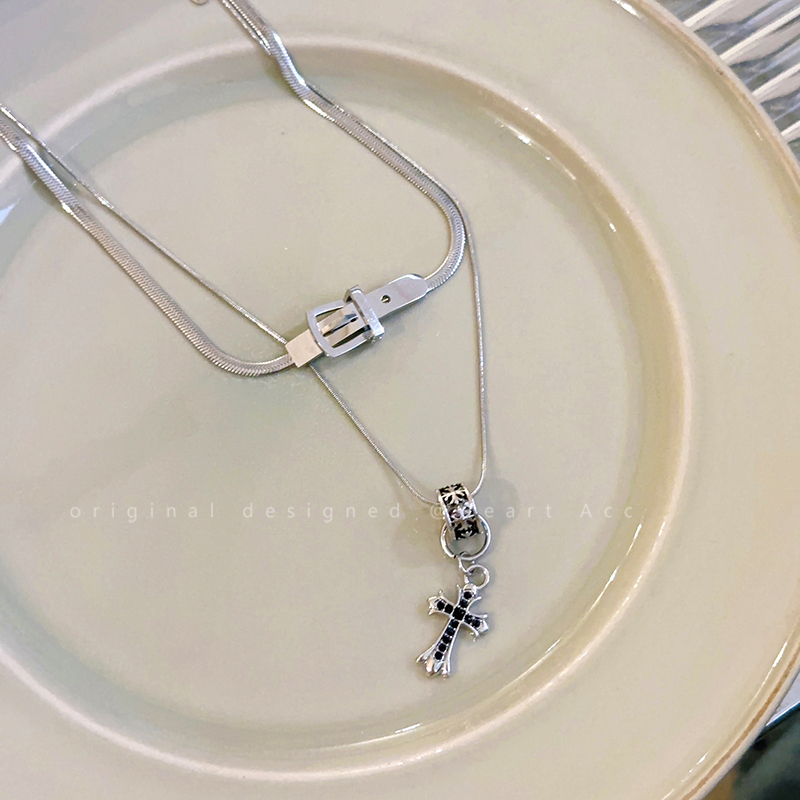 皮带扣圆环十字架吊坠项链女甜酷辣妹钛钢锁骨链时尚个性叠戴颈链