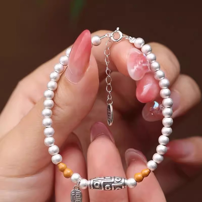 爆款小众国风古法九眼天珠手链女福牌圆珠轻奢小众百搭民族风转运