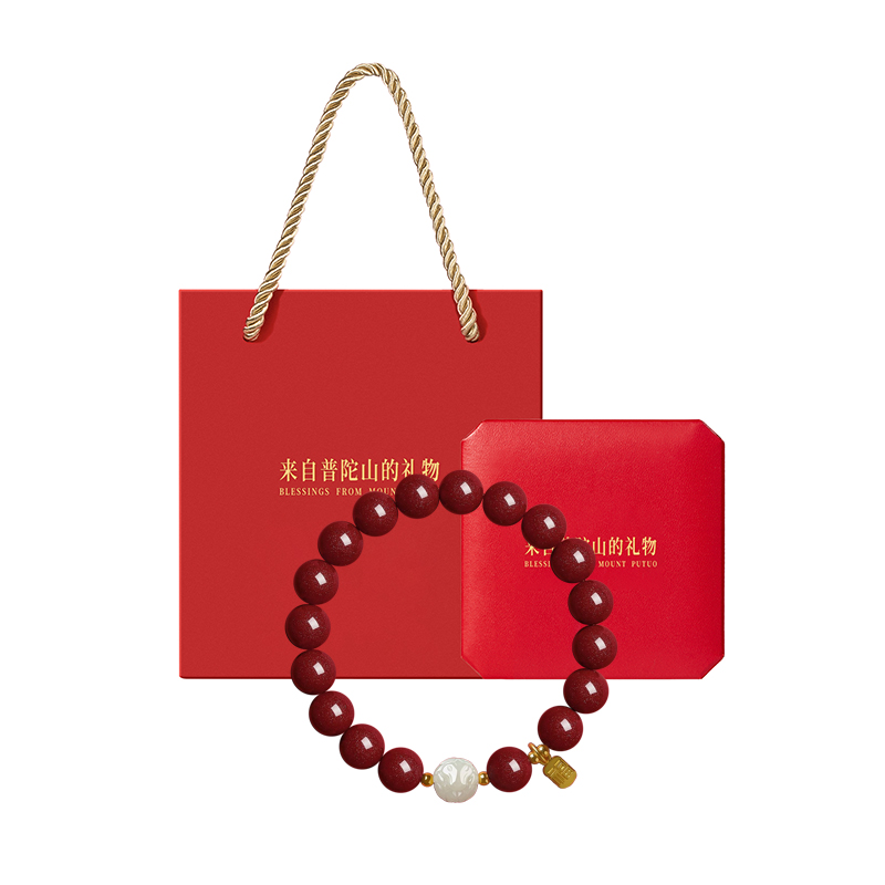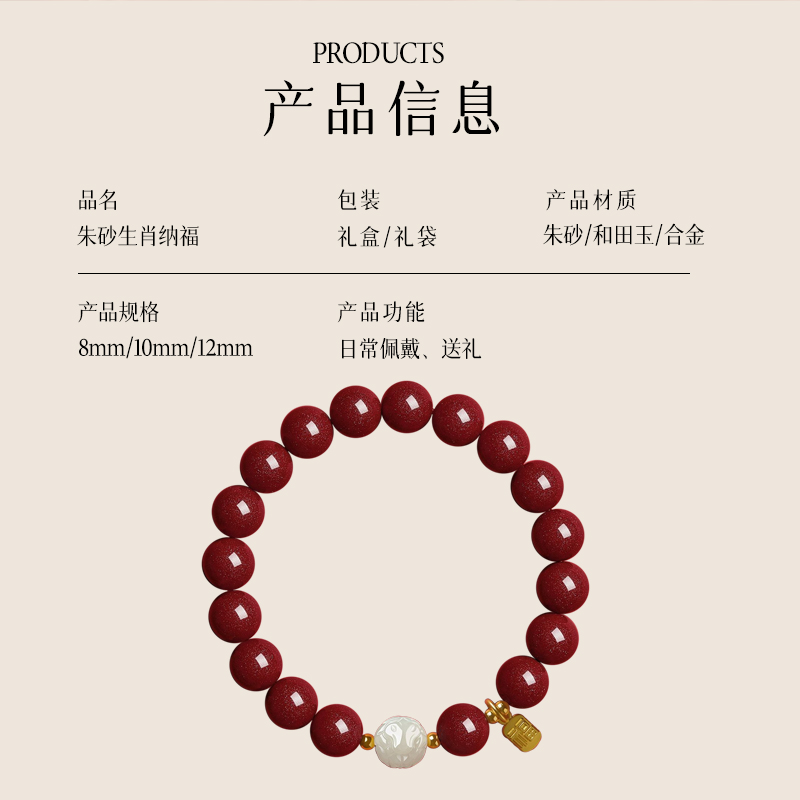 遇见普陀山原矿朱砂手串本命年护身符和田玉生肖手链2026年新正品