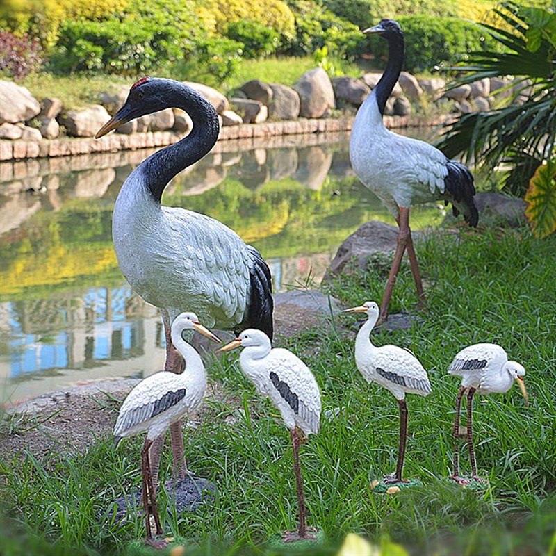 喷泉流水假山装饰品丹顶鹤仙鹤白鹭摆件动物鸟类模型花园庭院工艺