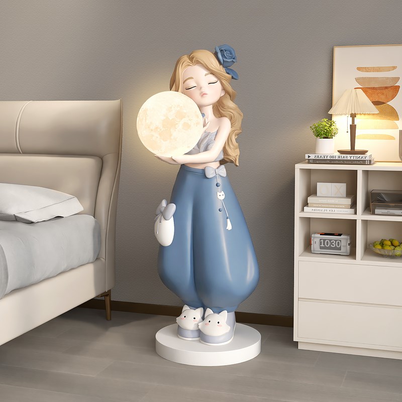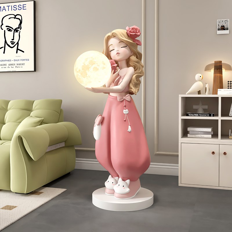 女孩客厅摆件大型落地q灯沙发边几电视柜旁边托盘轻奢装饰乔迁礼