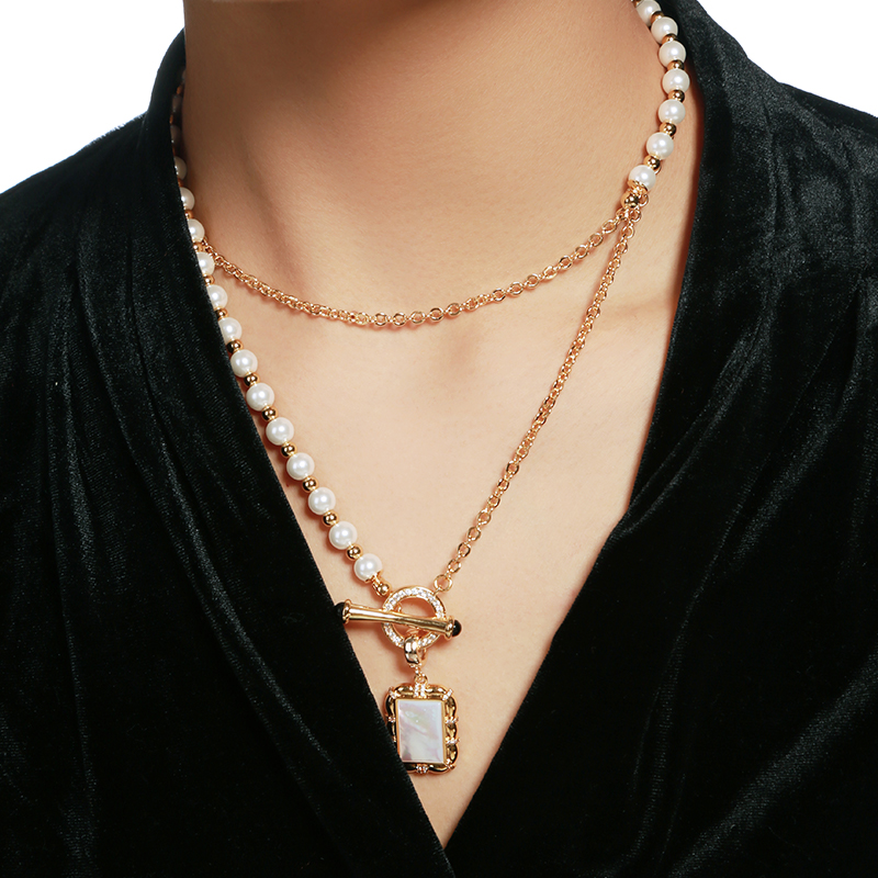 vk贝母项链女新款天然珍珠轻奢小众女士情侣法式高级感锁骨链