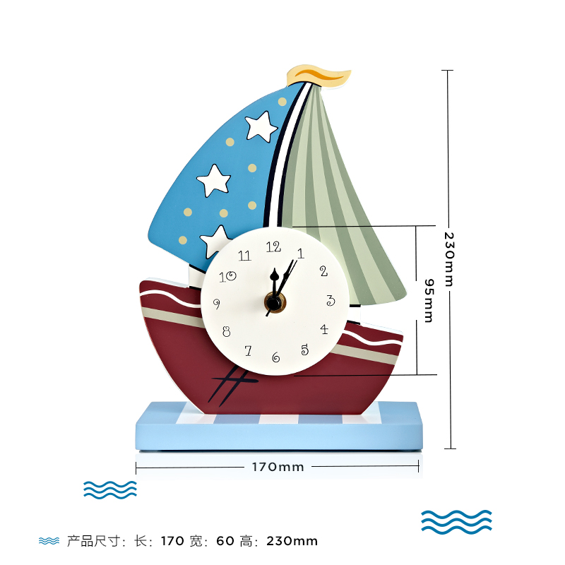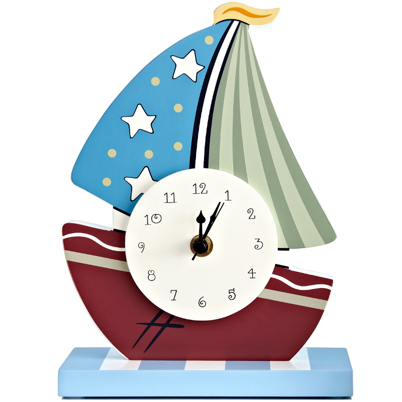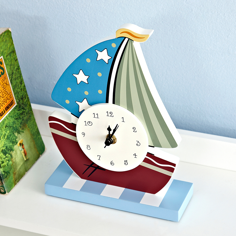 米图宝贝帆船主题装饰品家居小摆件儿童钟表静音创意书桌可爱摆钟