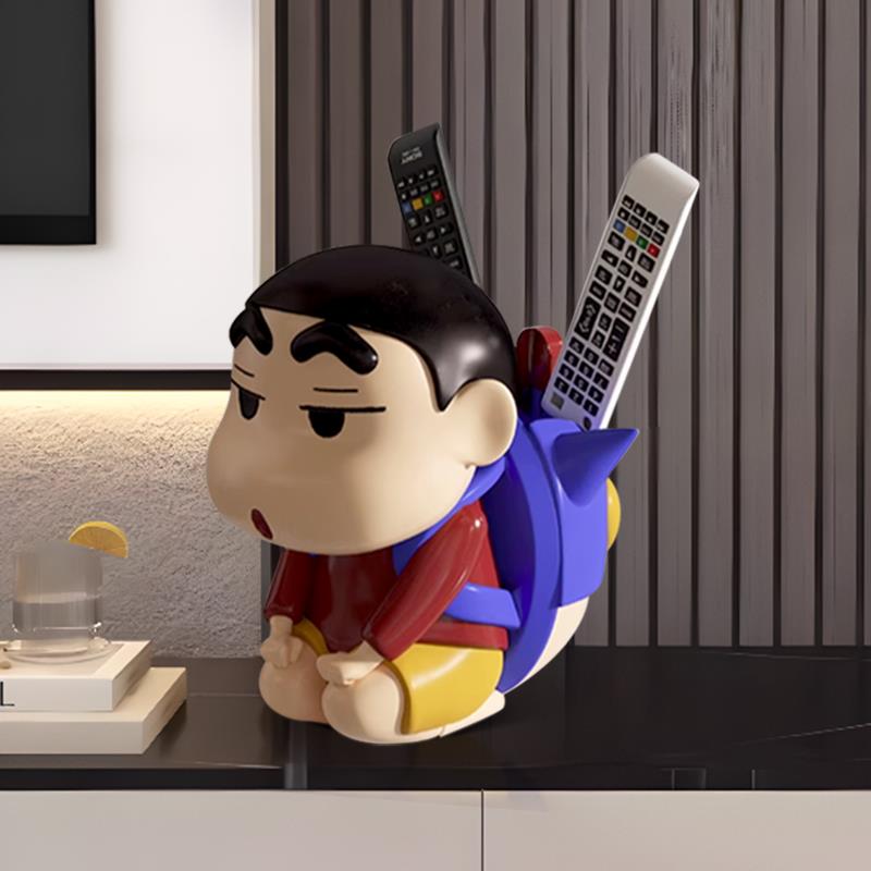 潮玩蜡笔小新收纳摆件客厅茶几遥控器收纳盒工位桌面笔筒乔迁礼品