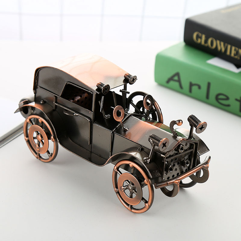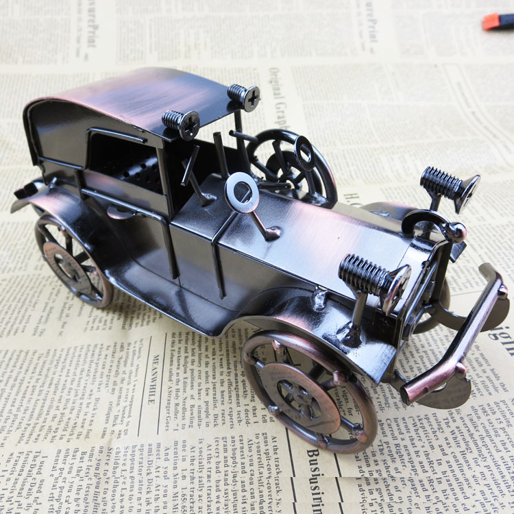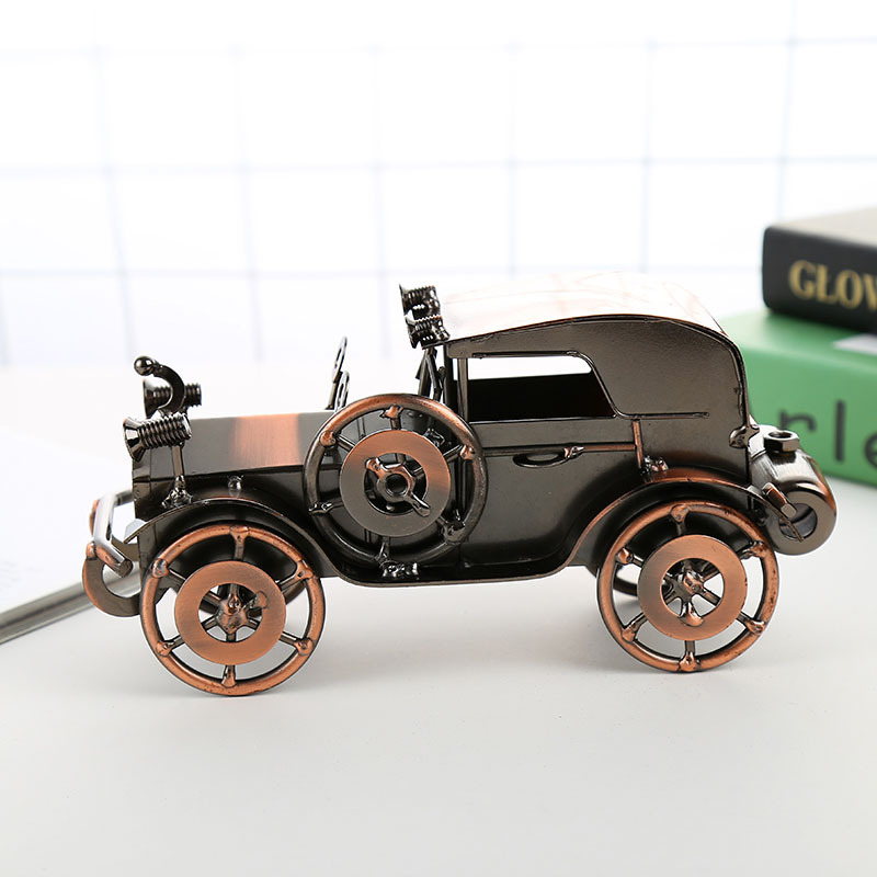 欧美复古怀旧铁皮老爷车模型摆件 酒吧咖啡店铁艺装饰工艺品礼物