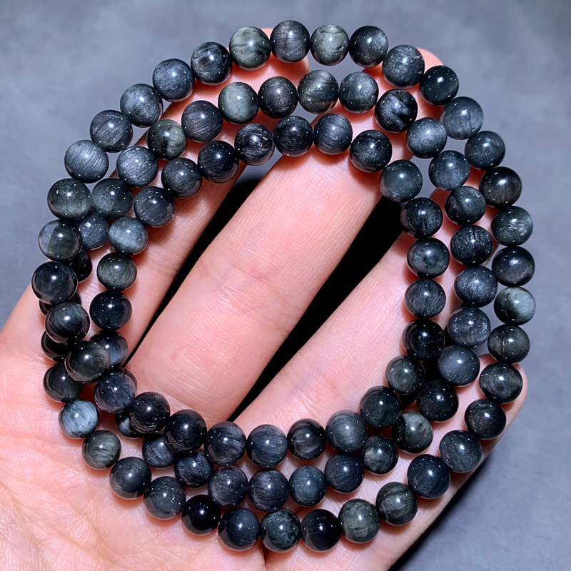 天然柔顺灰兔毛三圈手链水晶一物一图细密蓝灰兔毛手串饰品礼物女