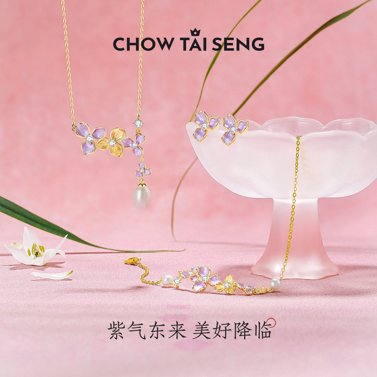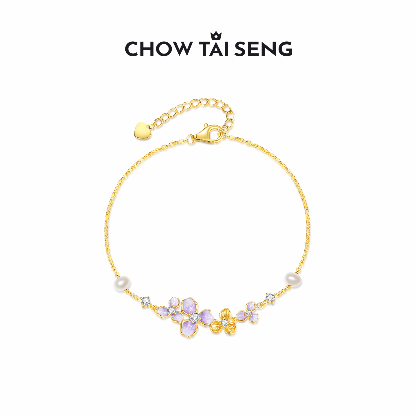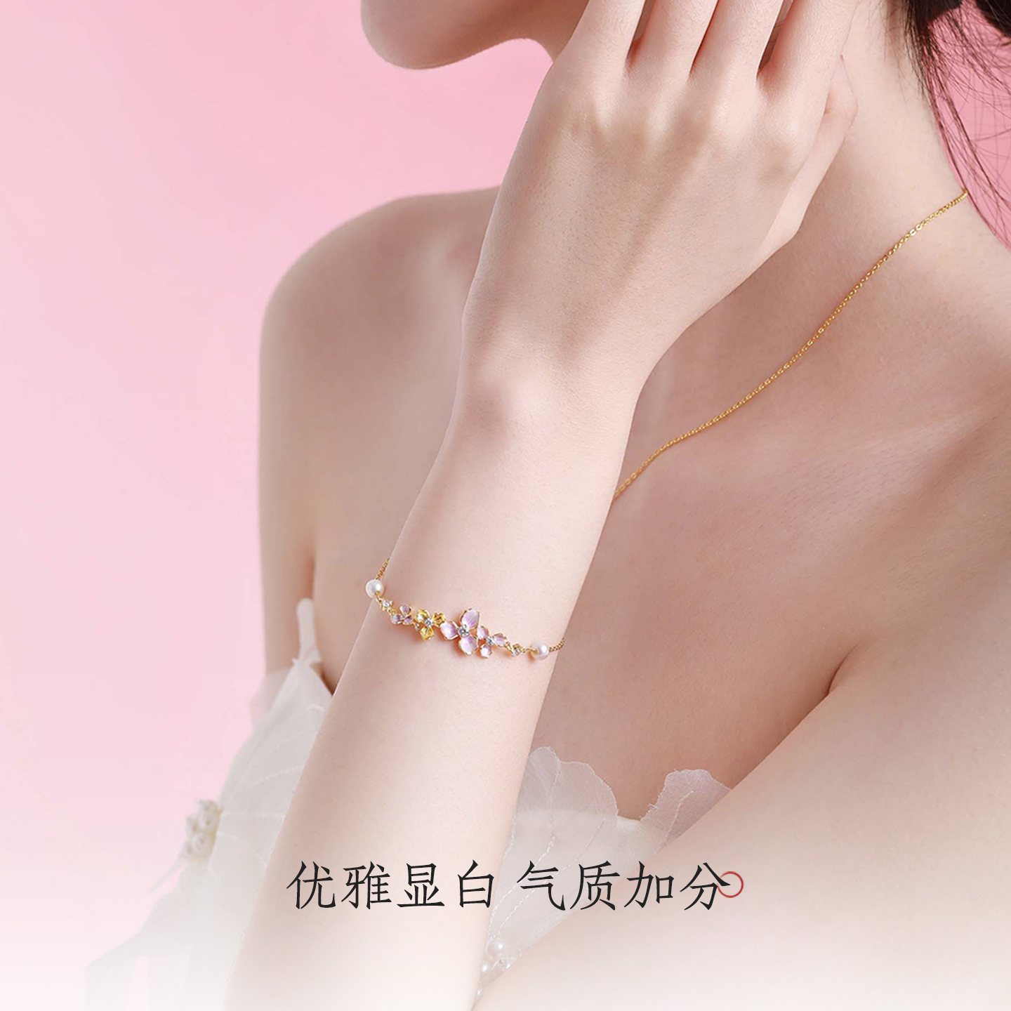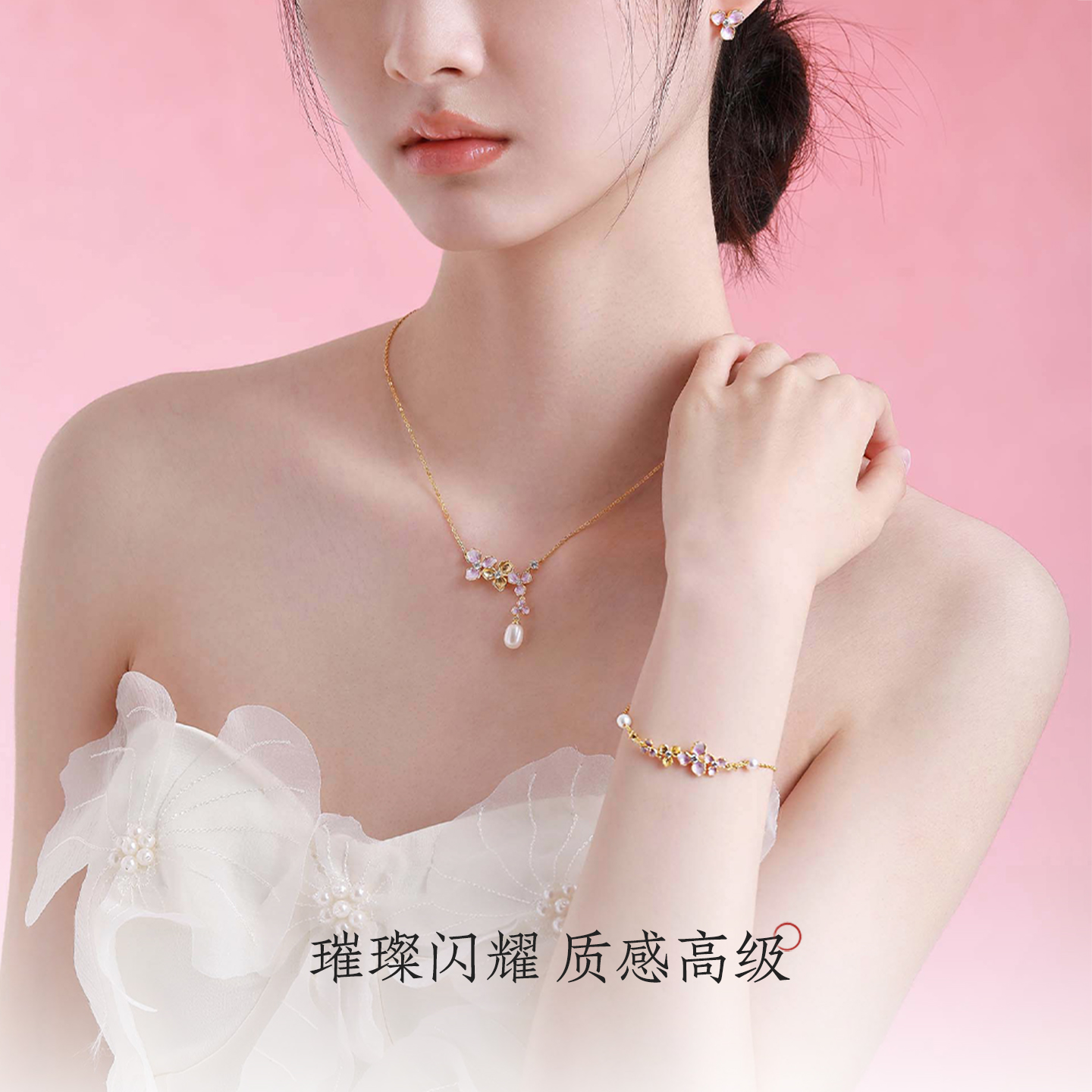 周大生紫藤花珍珠手链女纯银S925轻奢设计感手饰生日礼物送女友