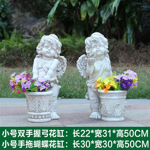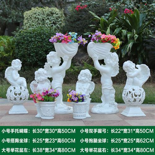 欧式户外花园酒店园林庭院玻璃钢雕塑小天使花盆别墅装饰人物摆件