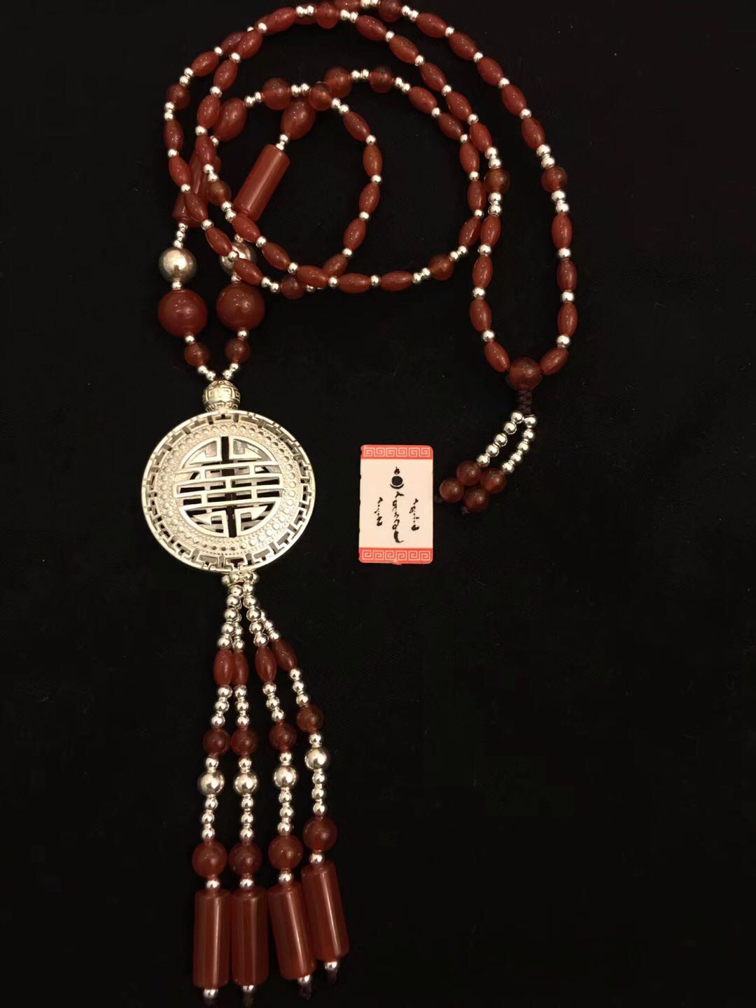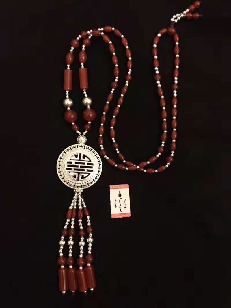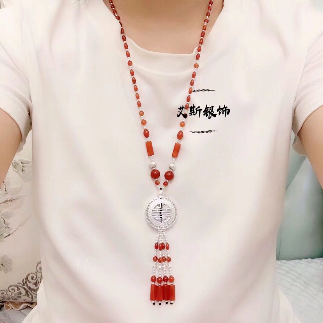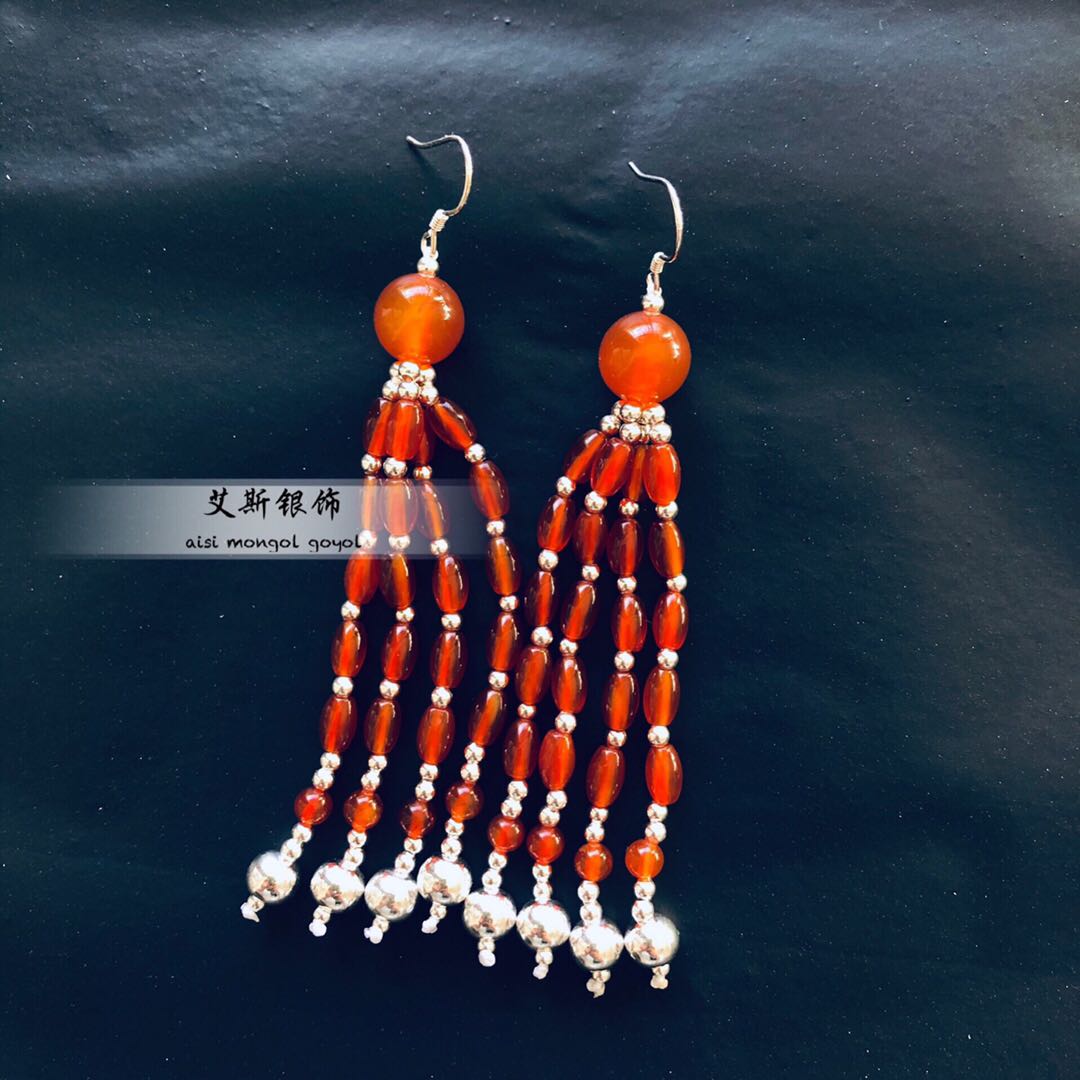 925纯银红玛瑙蒙古元素流苏毛衣链玛瑙长流苏耳环三圈手链三件套