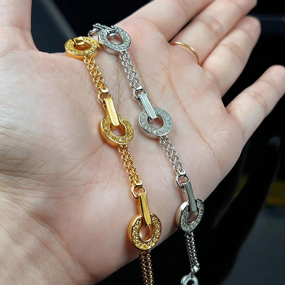 Young黄金色钱多多圆饼铜钱手链时来运转满钻钱币镂空双层手链女