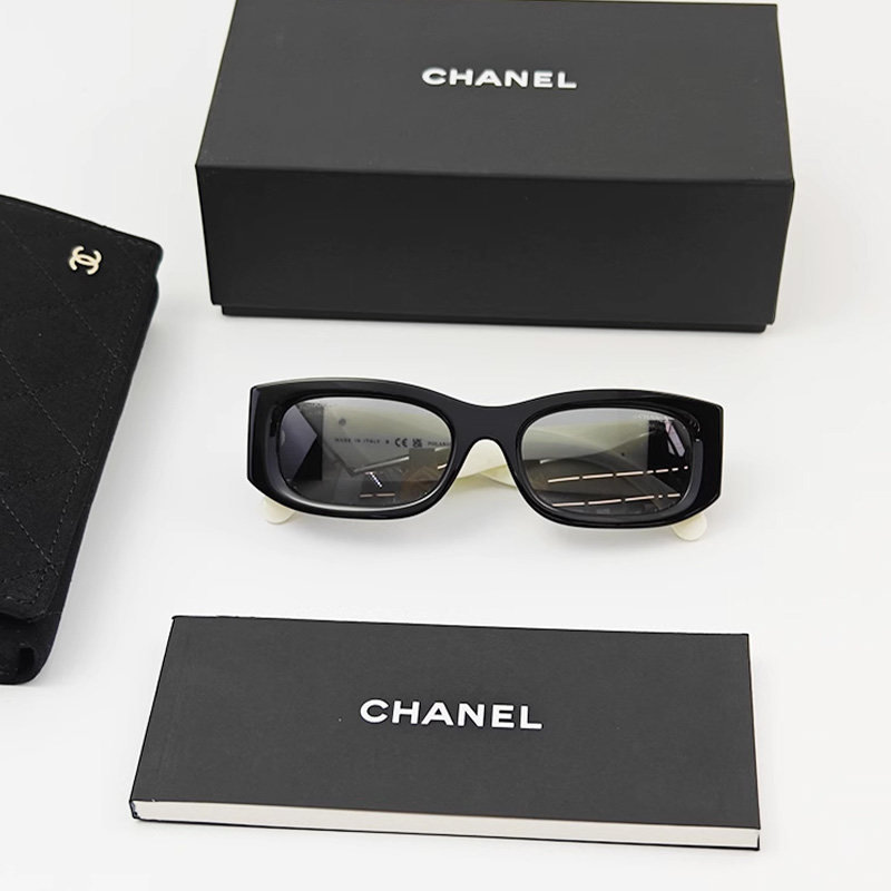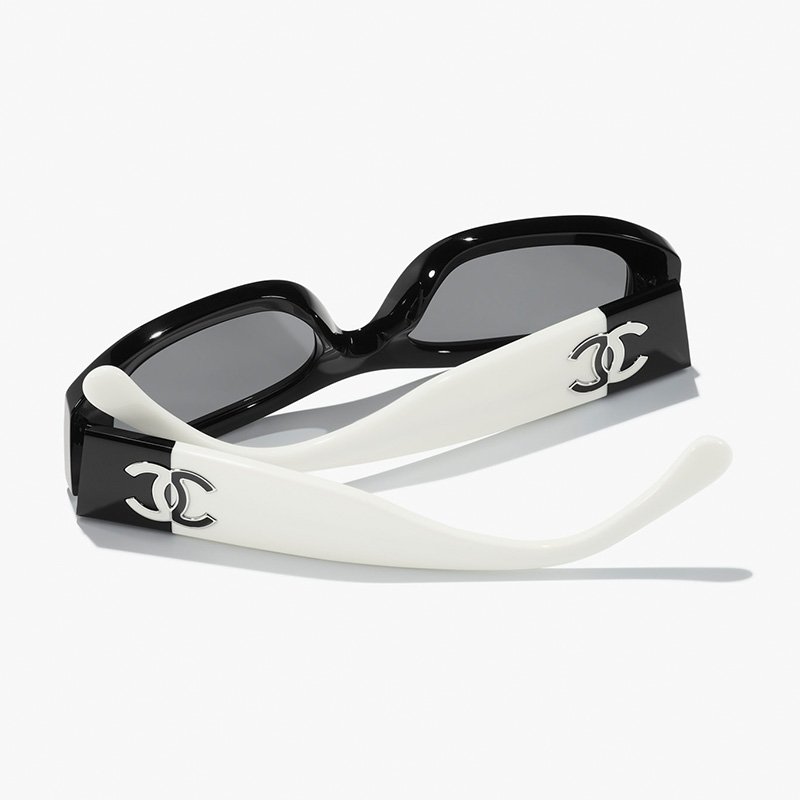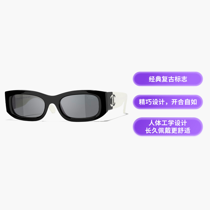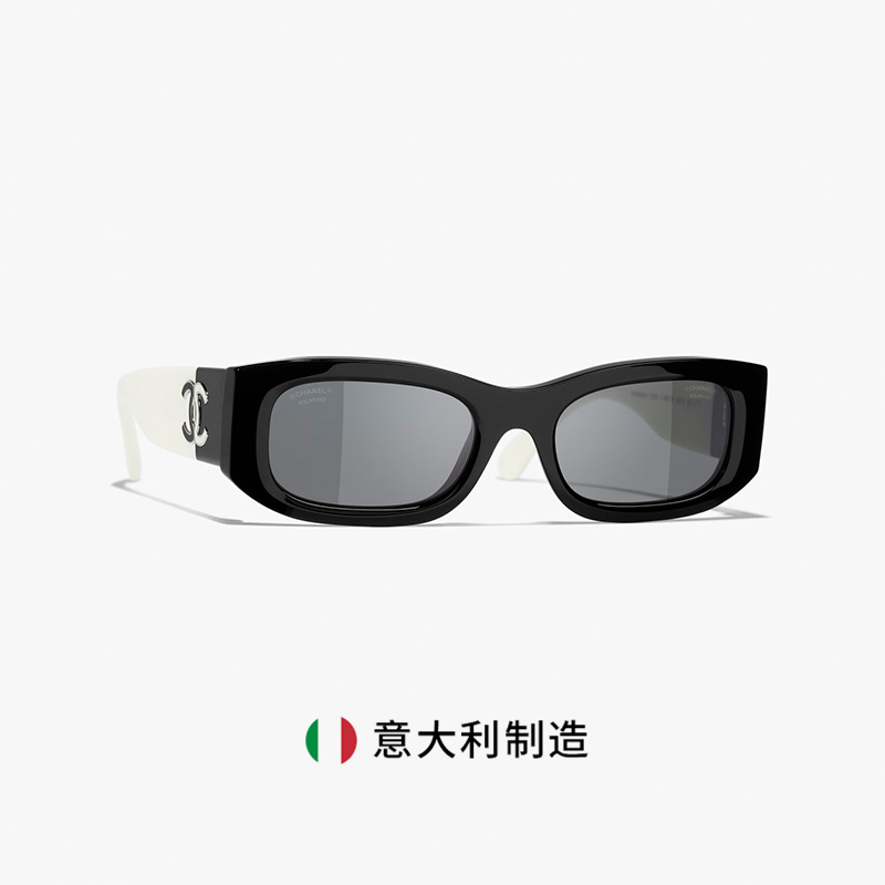 【自营】Chanel/香奈儿墨镜女黑白拼色双C大logo窄框太阳镜CH5525