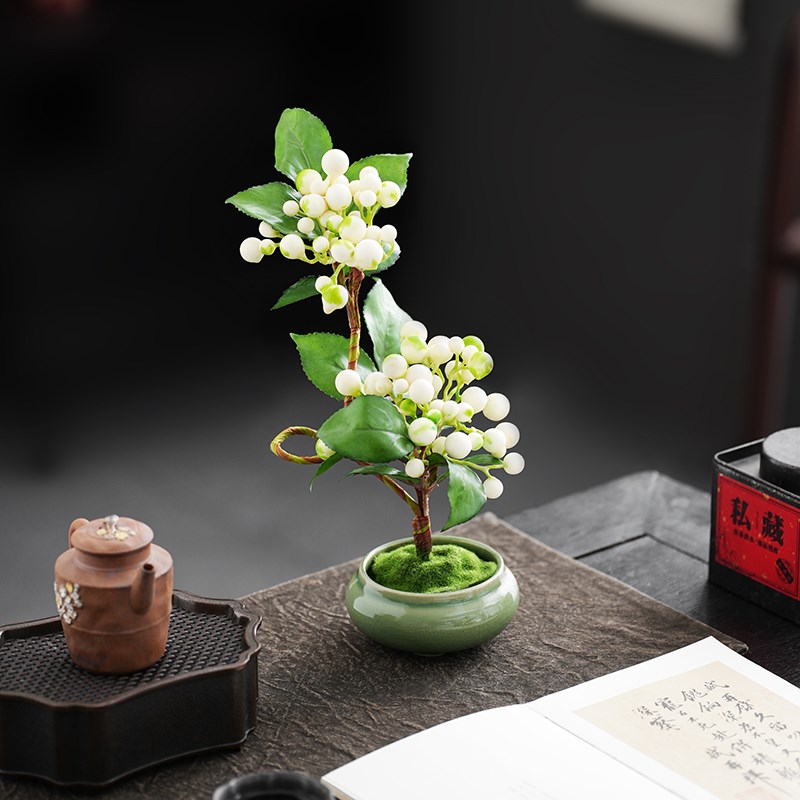 中式陶瓷花瓶仿真干花盆景摆件客厅桌面装饰假花松X树套装小植物