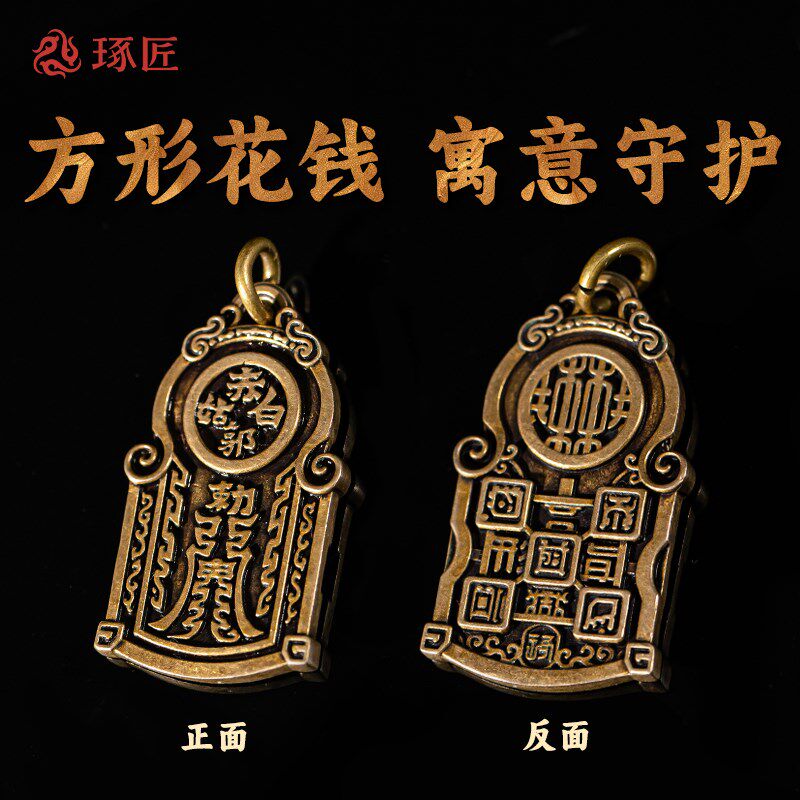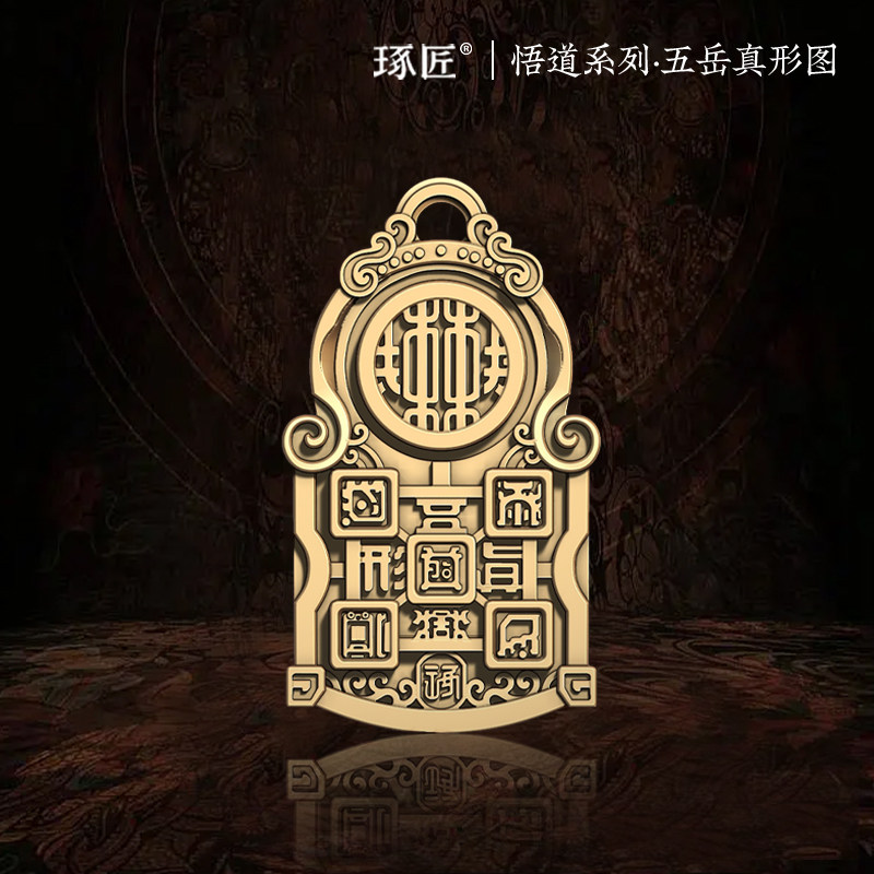 琢匠悟道系列五岳真形图吊坠男士钥匙挂件国潮吊牌铜钥匙扣挂饰