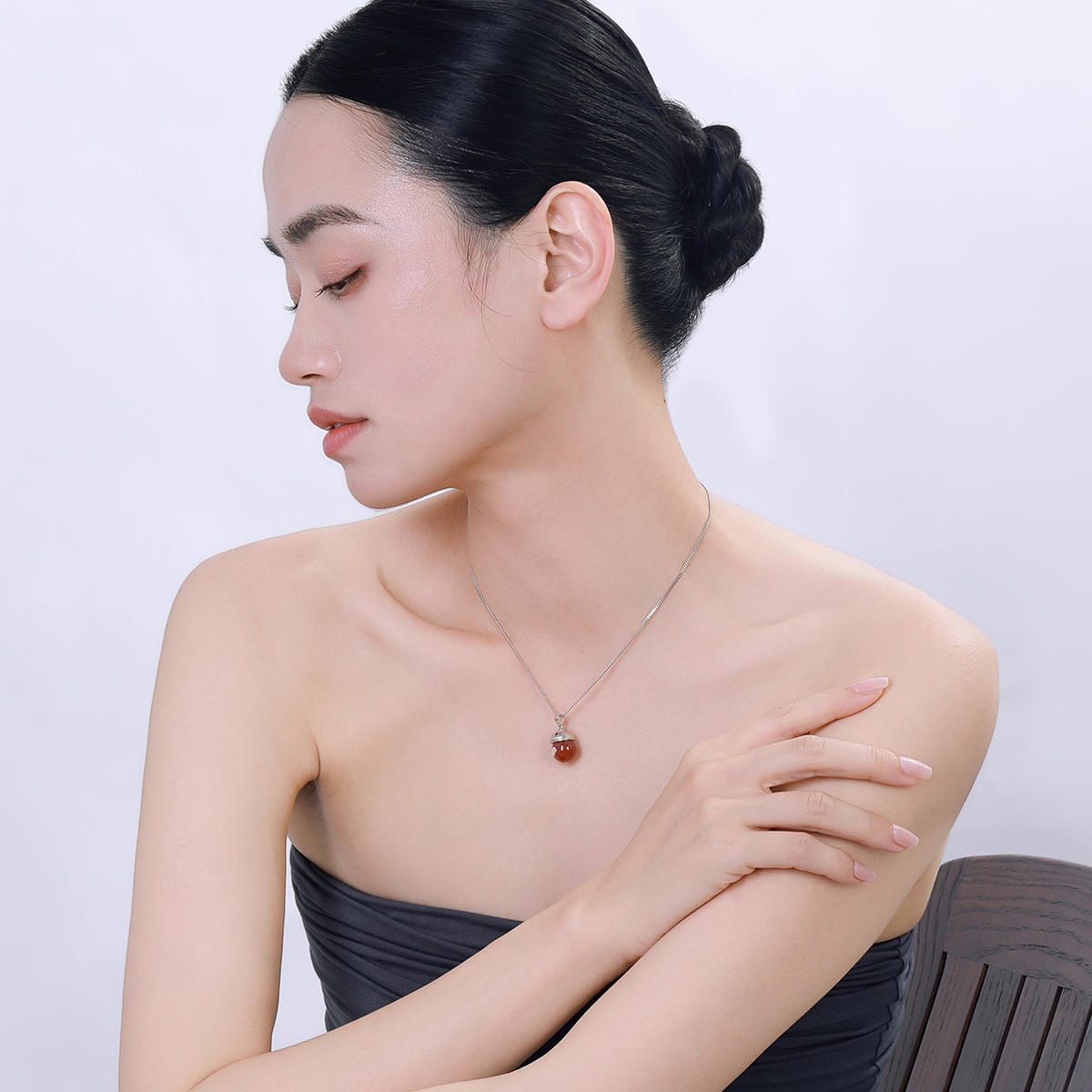 炙真银楼腰藏万贯 999纯银生肖项链女款新中式本命年红色玛瑙吊坠