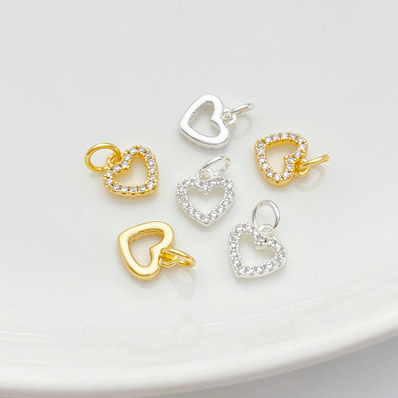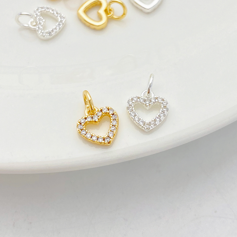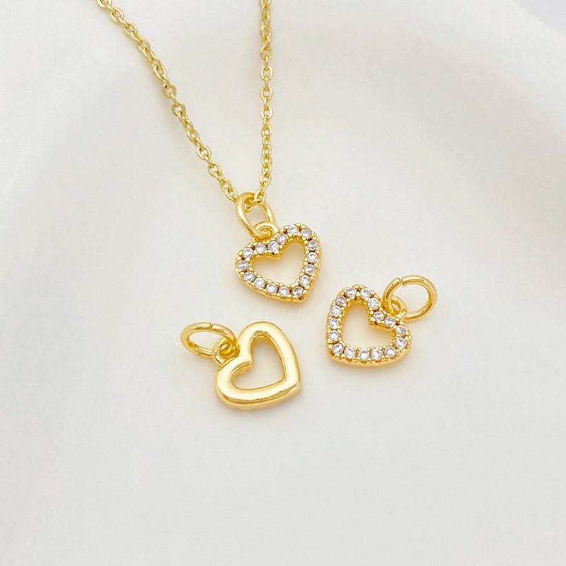 18K包金微镶锆石心形爱心吊坠小挂件手工diy手链项链饰品材料配件