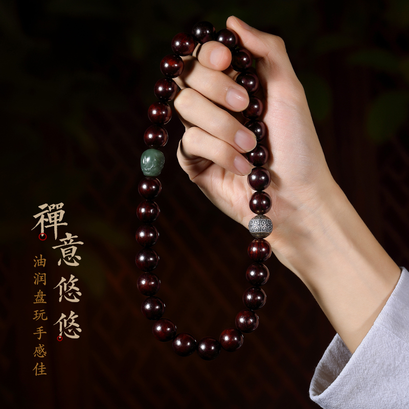 小叶紫檀手串和田玉貔貅双圈文玩佛珠回纹珠檀木手链手持念珠把件