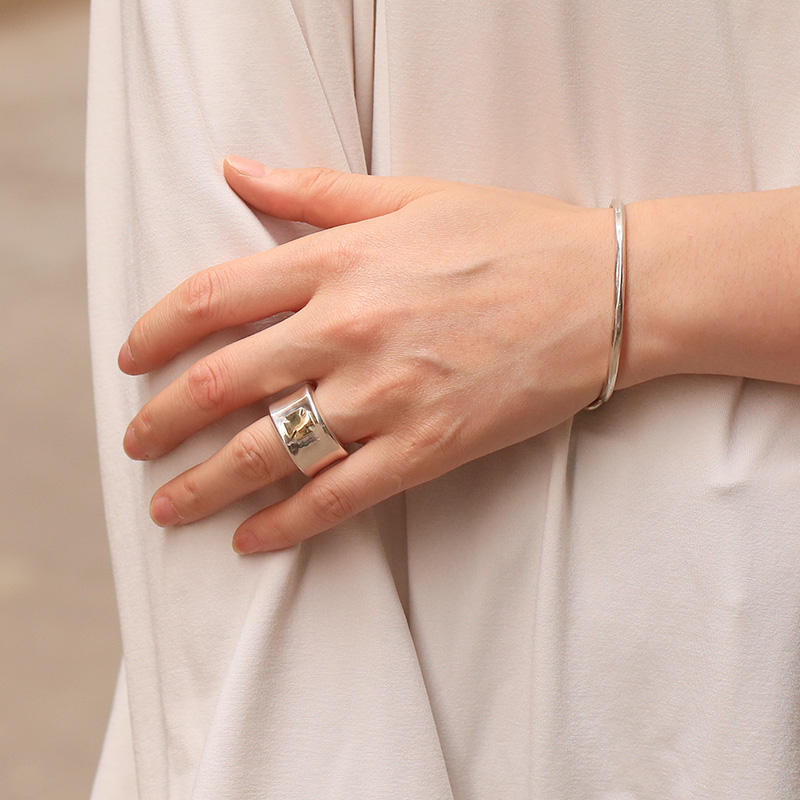 牛钝 stop light高山隆十字平打戒指纯银925手工制作厚款版指环