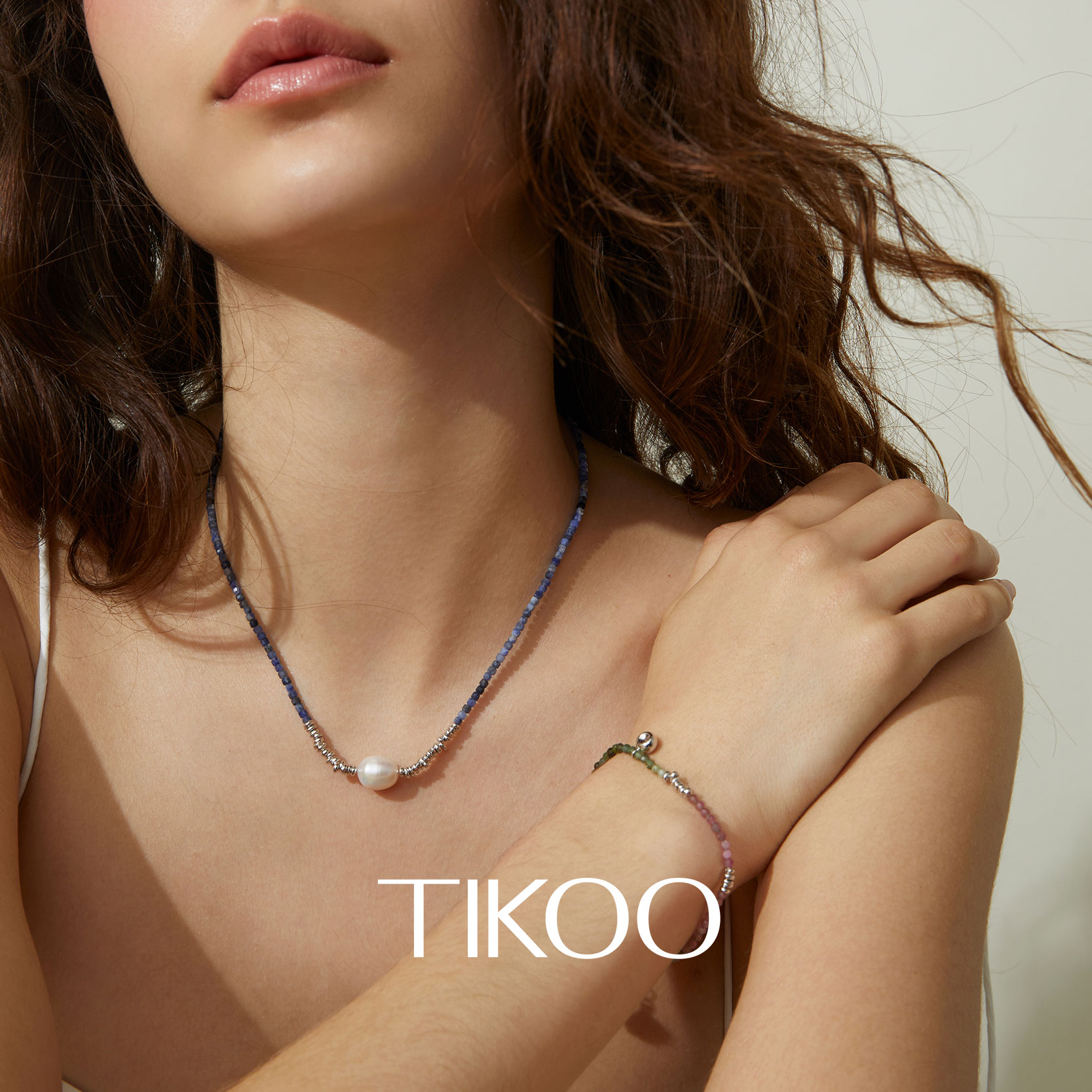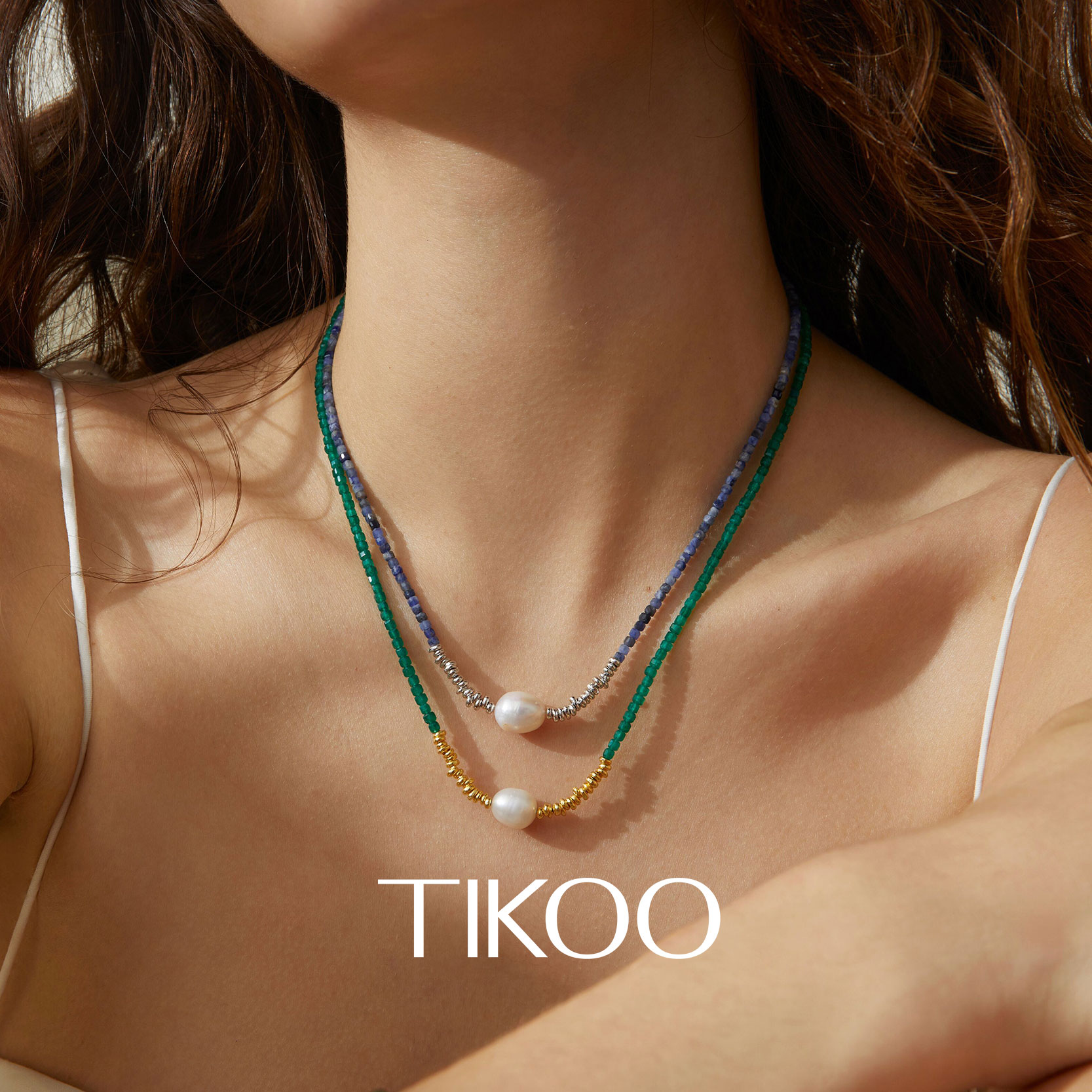 TIKOO珍珠项链女叠戴纯银串珠高级轻奢小众绿色多巴胺彩色蓝饰品