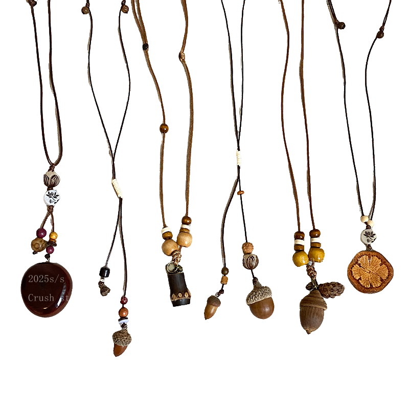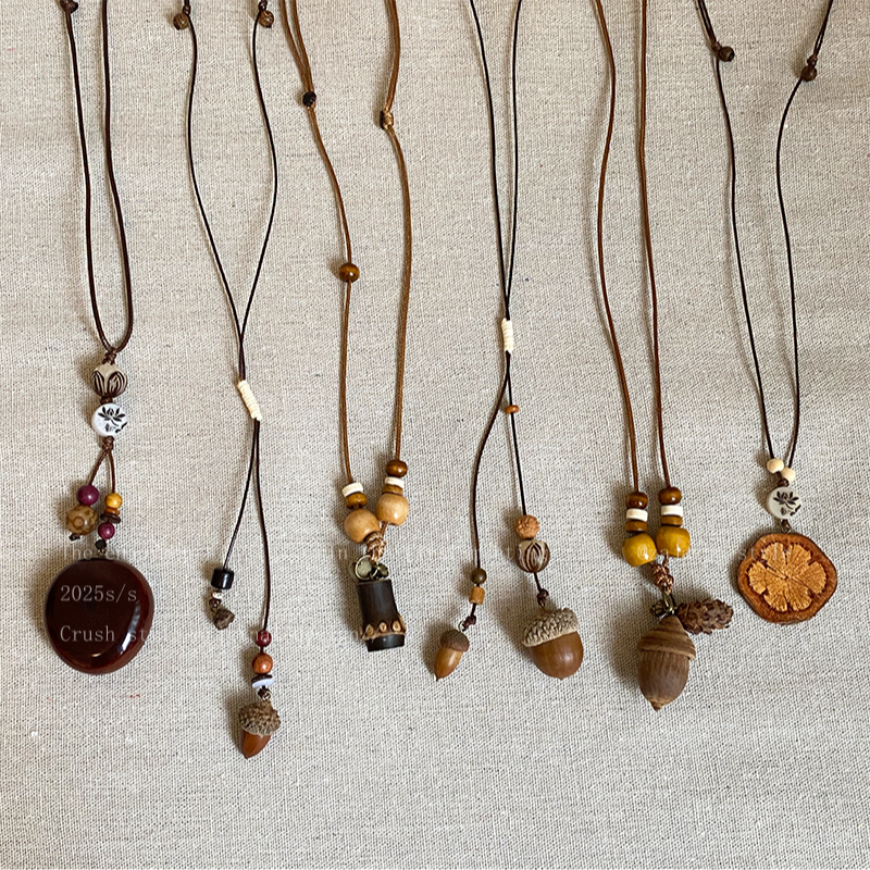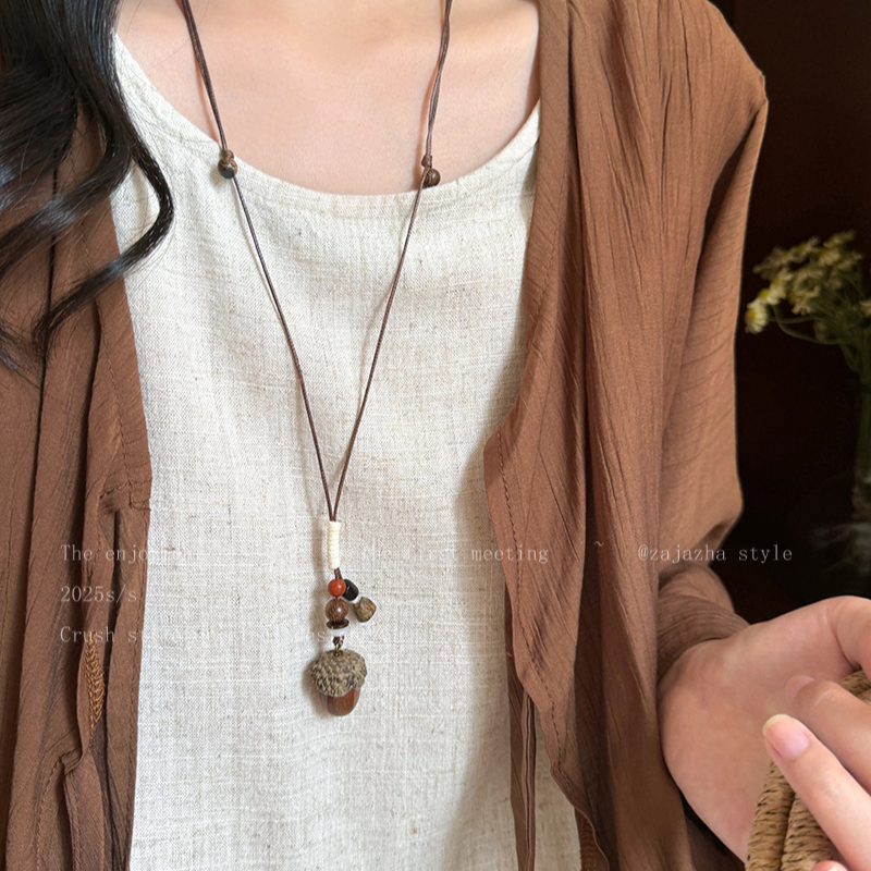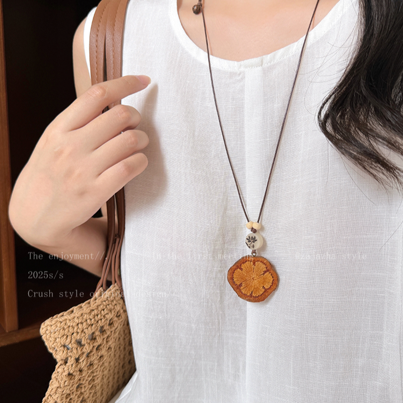 复古森系长款木质吊坠项链女毛衣链民族风衣服装饰配饰