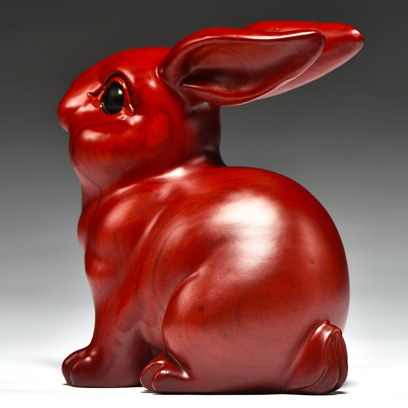 红色木质兔子雕刻摆件实木制十二生肖木头兔吉祥物家居红木装饰品