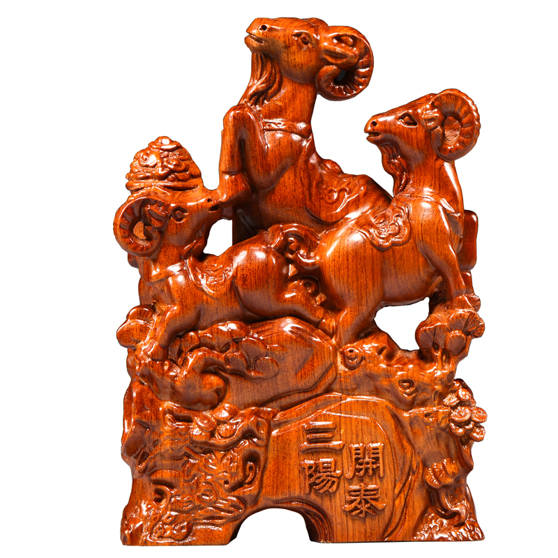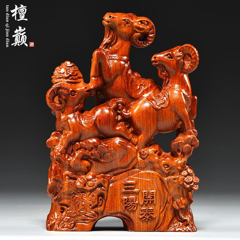 花梨木雕三羊开泰摆件实木质三阳开泰家居客厅办公室装饰工艺礼品